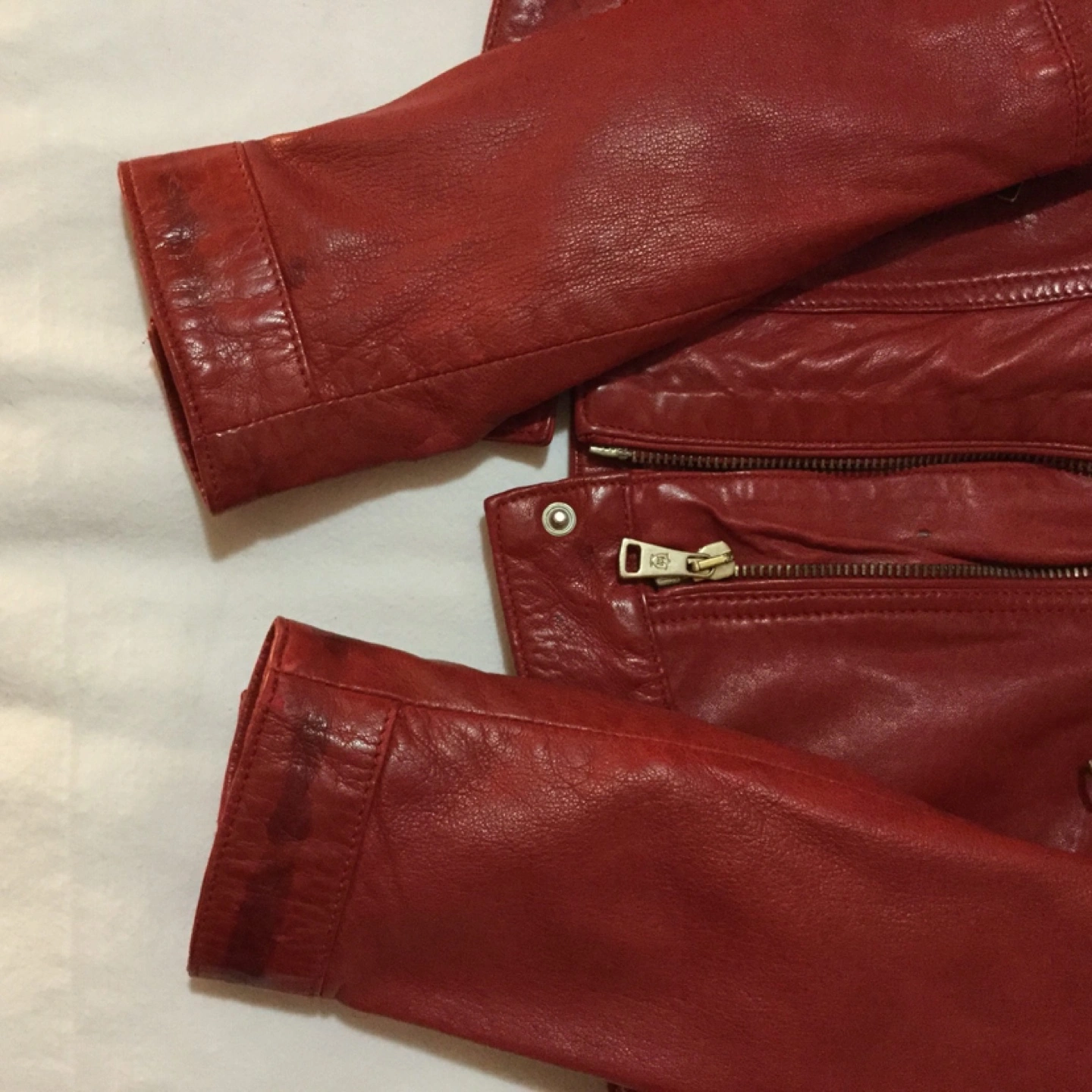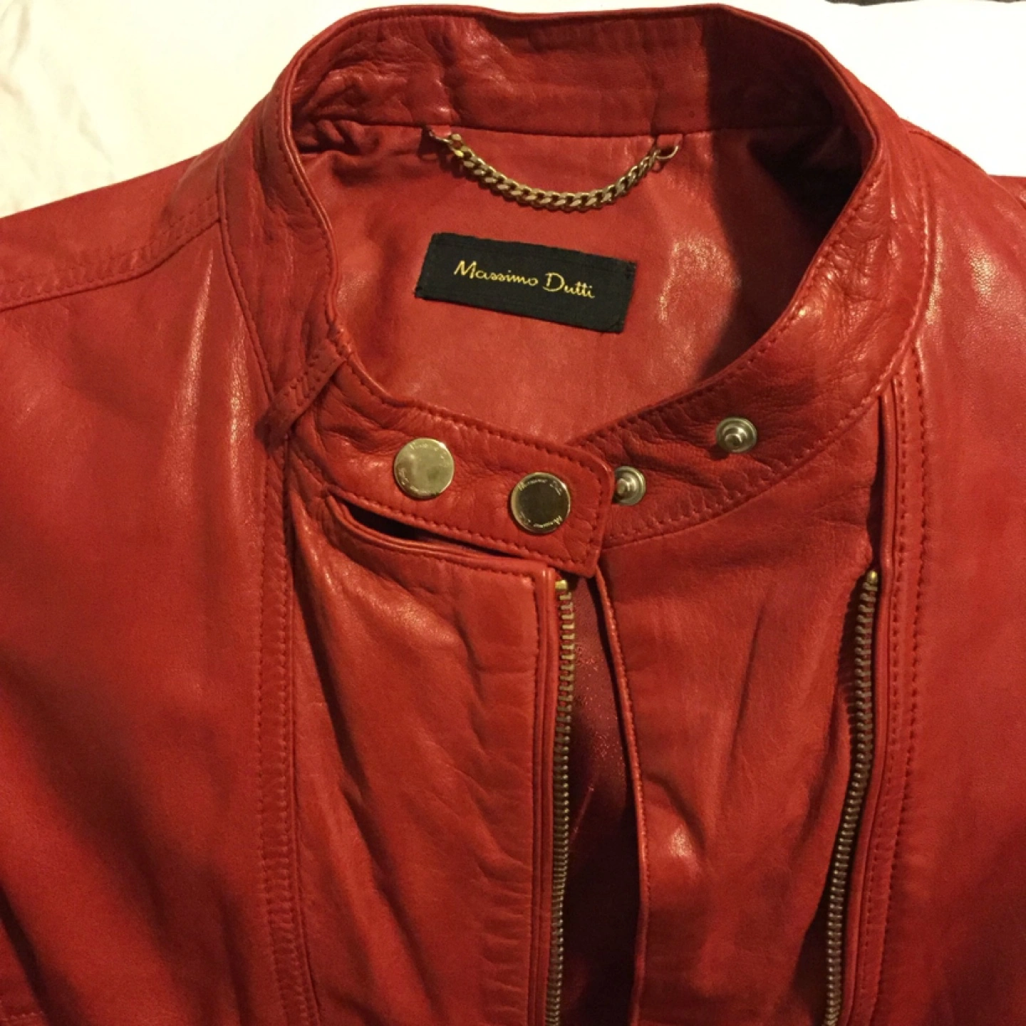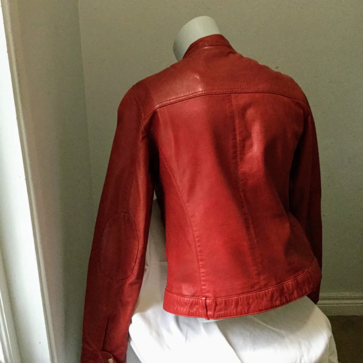 Gorgeous red leather jacket. Zipper closure. Multiple pockets. Very good condition.