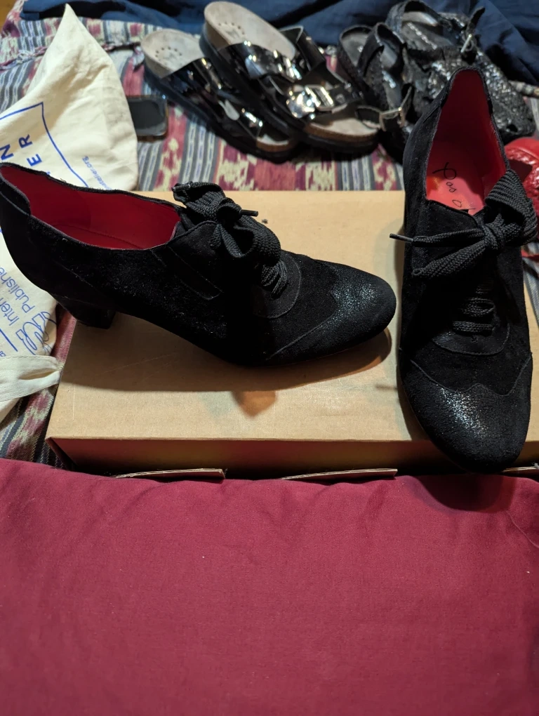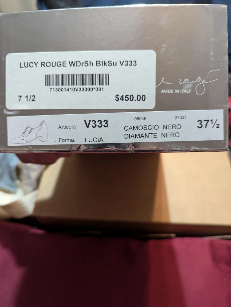 641A beautiful pair of women's shoes in like new condition. Lucy Rouge brand, sold at $450.00 plus taxes at retail. Selling at $200.00. UK size 37 1/2, about 7 in Canada.