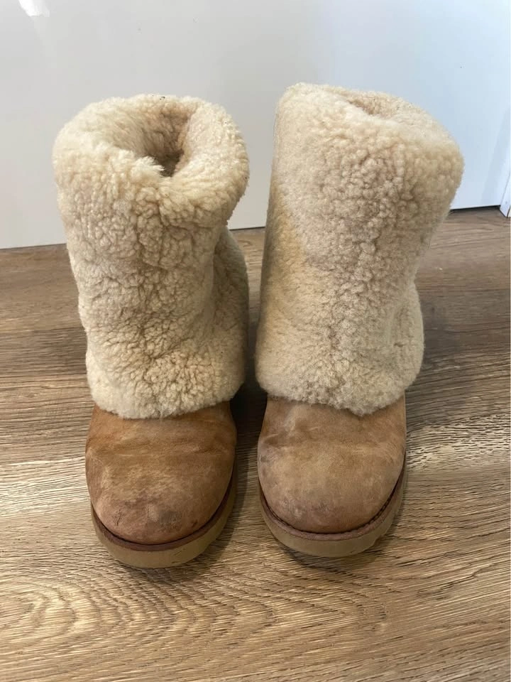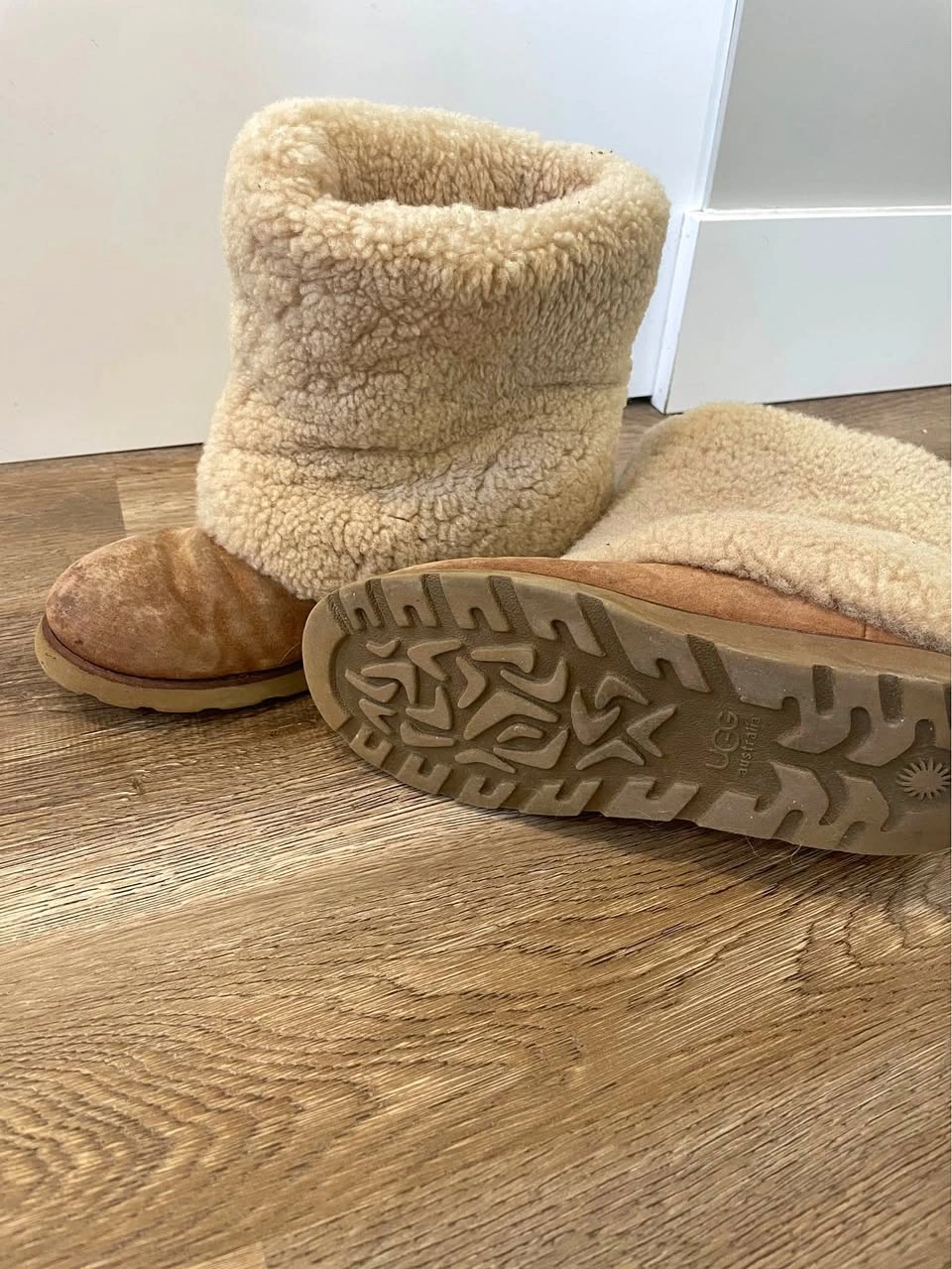 60Super cute for winter ❄️ Women’s UGG maylin chestnut suede and shearling boots Well loved but still in good shape A little wear on the toes Capilano area
