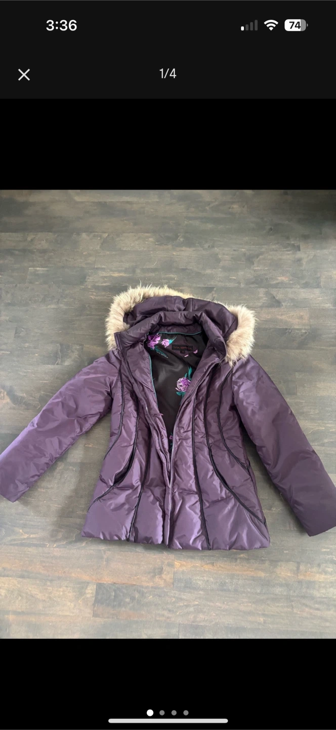 10Women’s Via Spiga winter coat- size XS Barely worn women’s Purple winter coat with fur hood