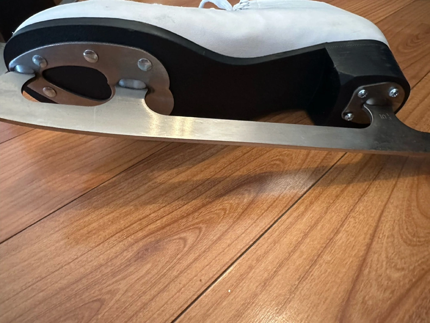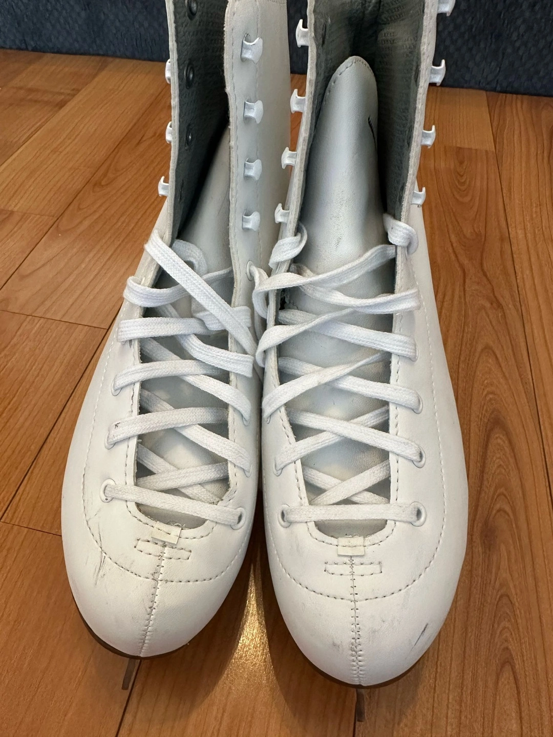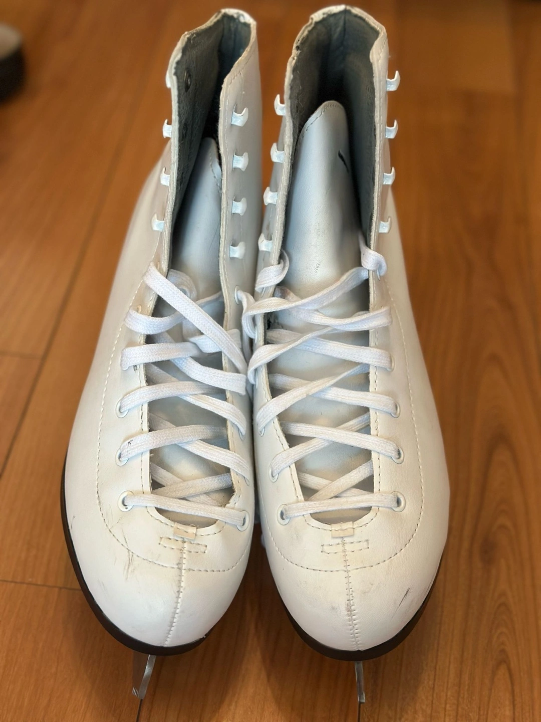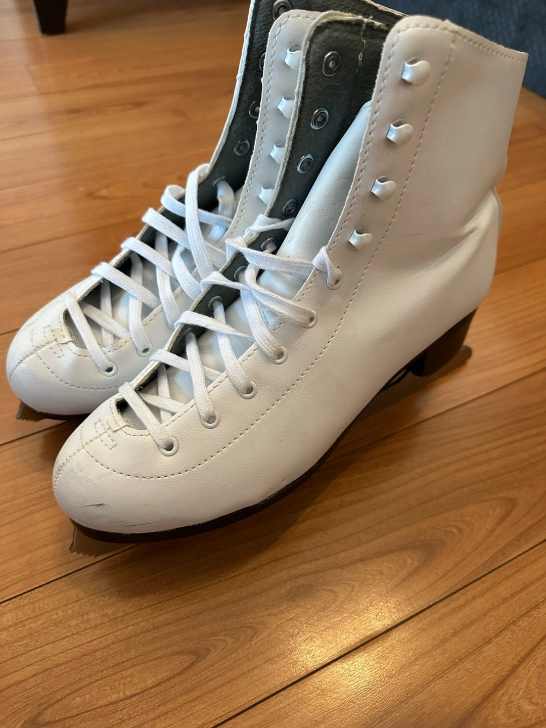 Pair of white figure skates. Lace-up design. Used condition. Suitable for recreational skating.size 8