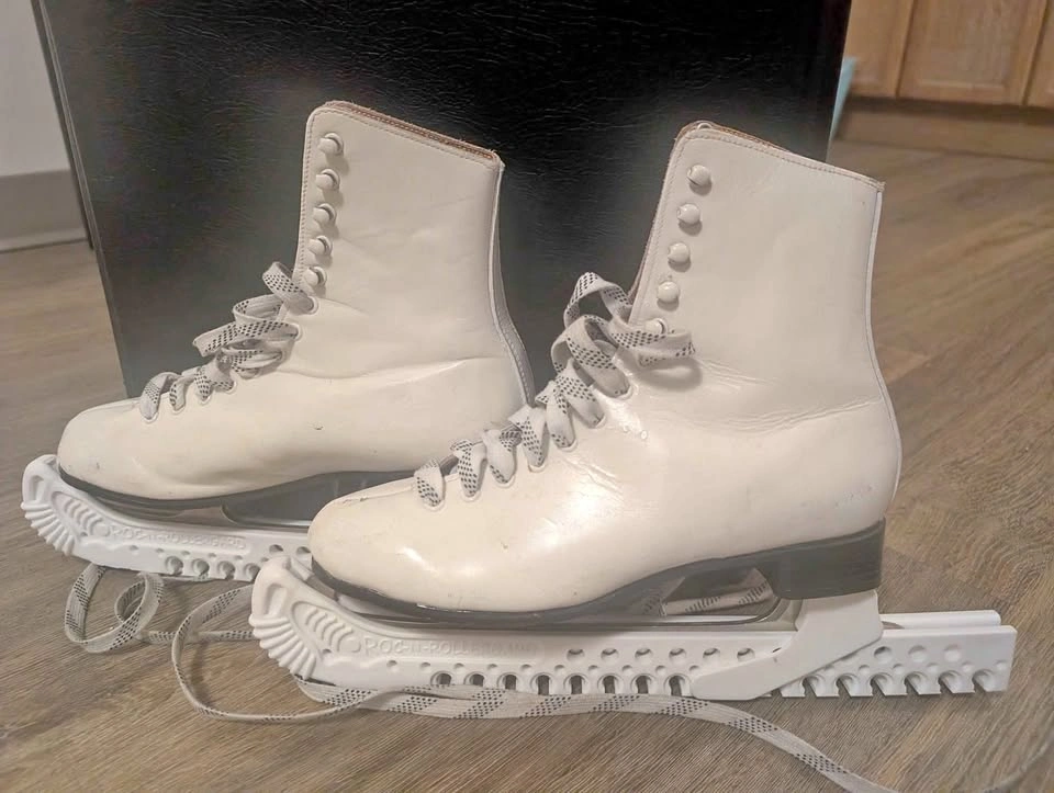 60Selling a pair of classic women’s size 7 white ice skates, made in Canada by Jellinex. Known for their durable build and comfortable fit, these skates are in good condition and perfect for recreational or beginner skating. Reliable Canadian quality! Women’s size 7 White, classic design Made in Canada – Jellinex brand Good condition Comfortable and sturdy, with hardly used blade protectors. Price: $15 Pickup: University of Waterloo residential area