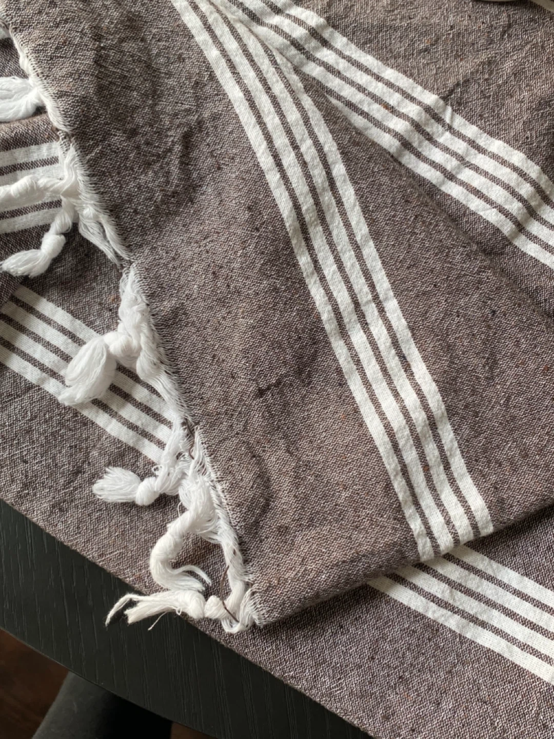 Brown and White Striped Turkish Towel