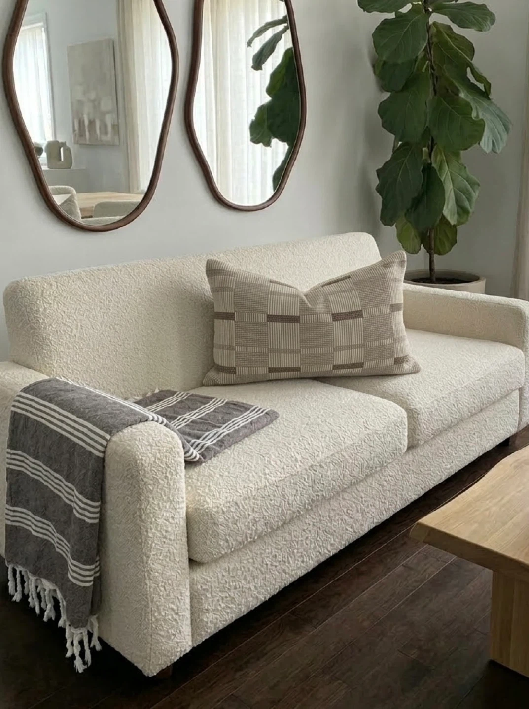 A lovely brown and white striped Turkish towel. It's made of a soft, textured cotton material. This versatile towel can be used as a throw, picnic blanket, or beach towel!