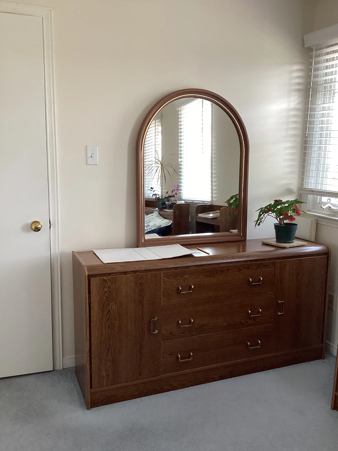Selling a wood armoire and dresser with a mirror. Both are in great condition and would look great in any bedroom. The armoire has plenty of storage space, and the dresser has several drawers for clothes and other items. The mirror is in excellent condition as well. A great addition to your home!