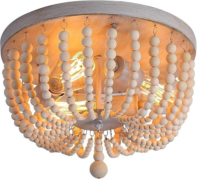 10This flush mount ceiling light decorated classic bohemia style elements made up of high quality solid natural wooden beads creating an eye-catching look that lends bohemian flair to any area charming 3-light cast their warm glow throughout your space. Bulb Requirement: Use three E26 bulbs compatible with LED Edison Incandesent CFL and halogen bulbs.(bulb not included)