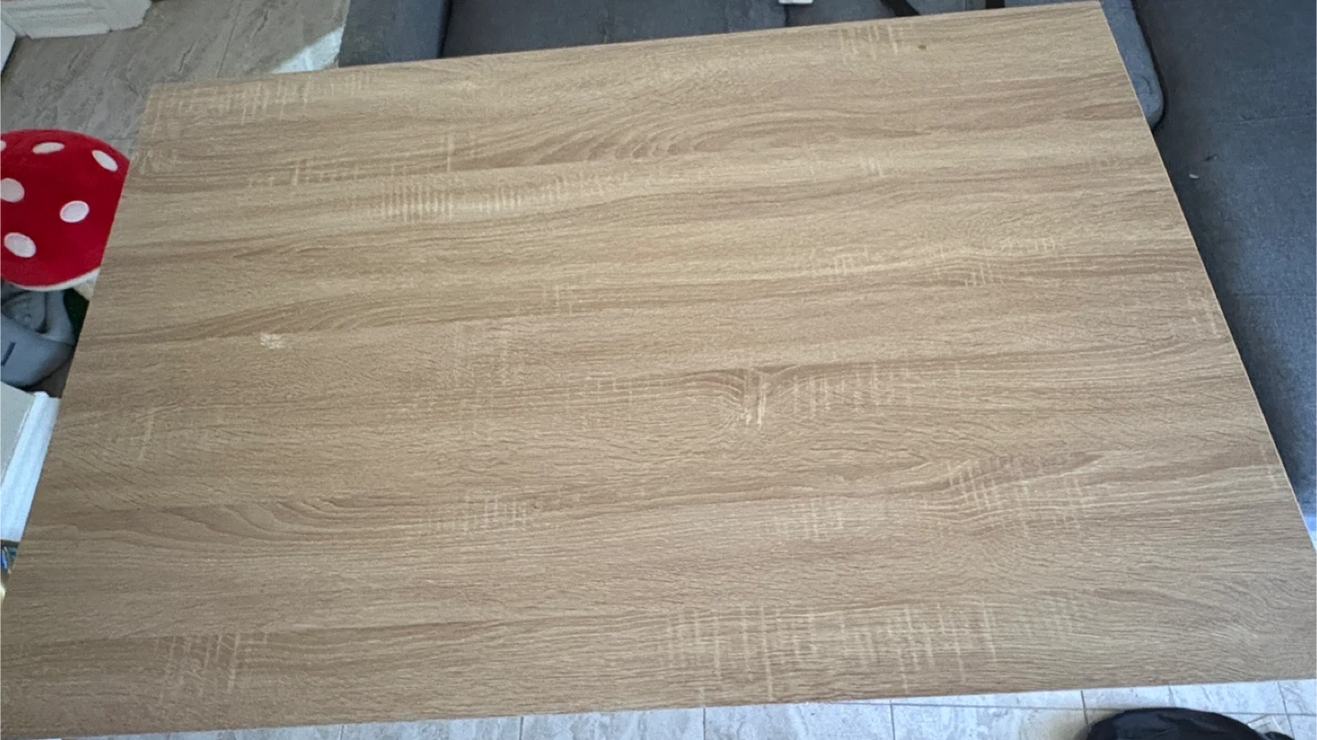 Selling a table with a light wood-look top and black metal legs. There are a couple of small marks on the surface as shown in the pictures, but overall it's in good condition! Would be perfect as a desk or dining table NEEDS GONE ASAP 43.5-27