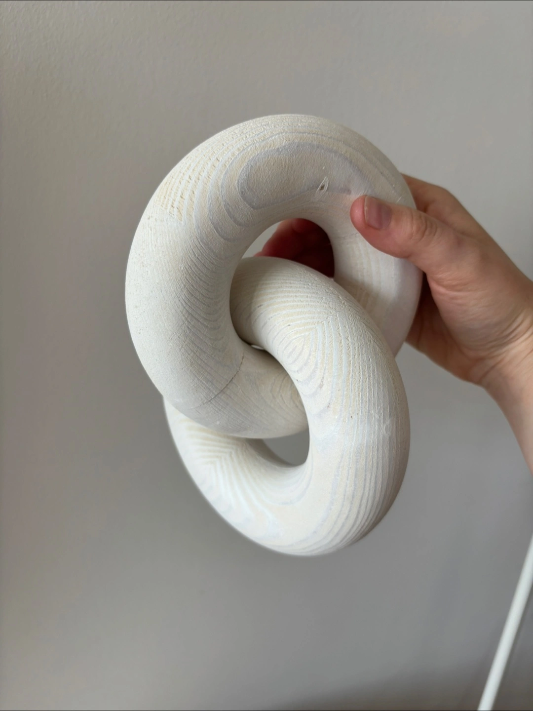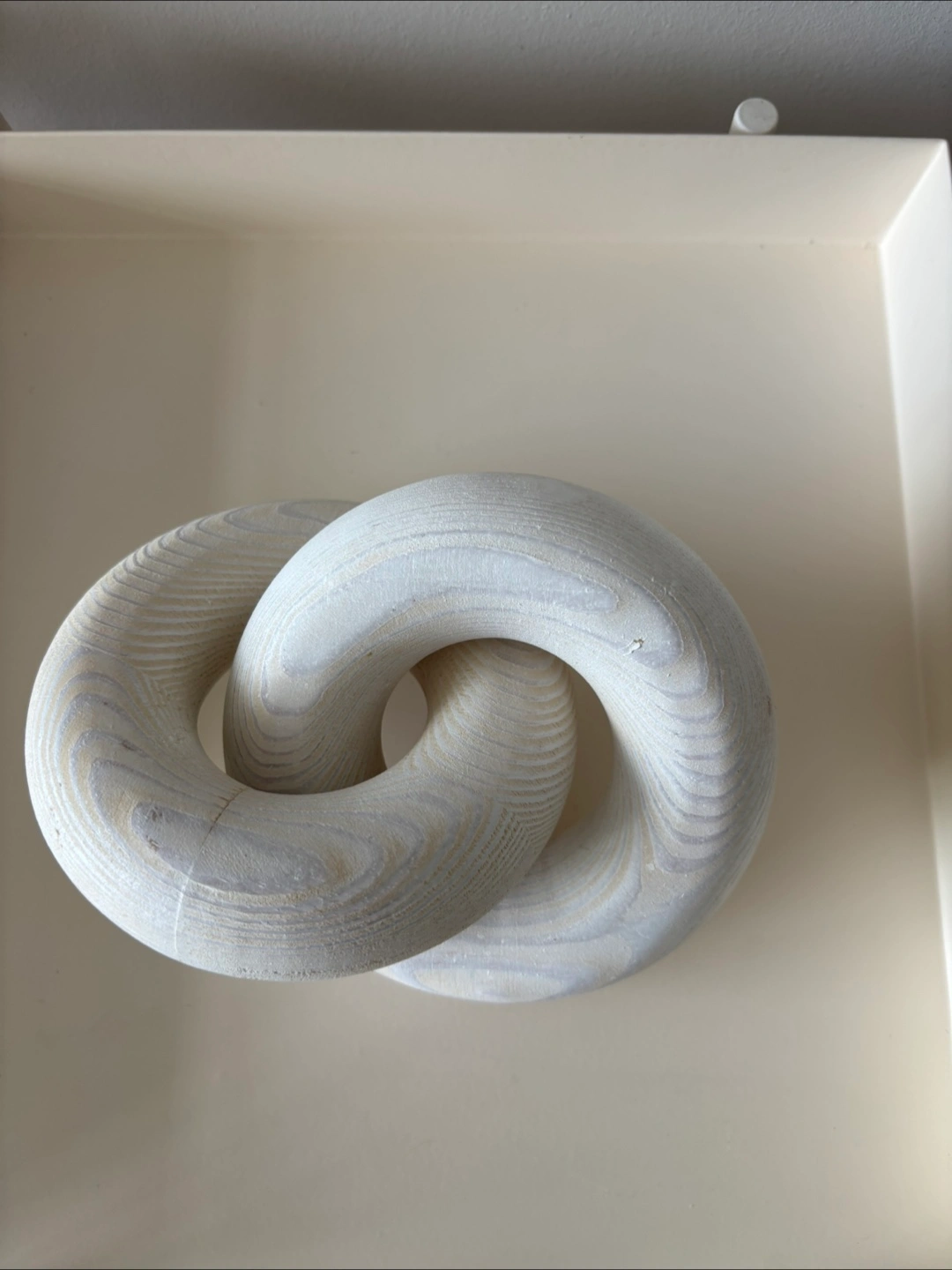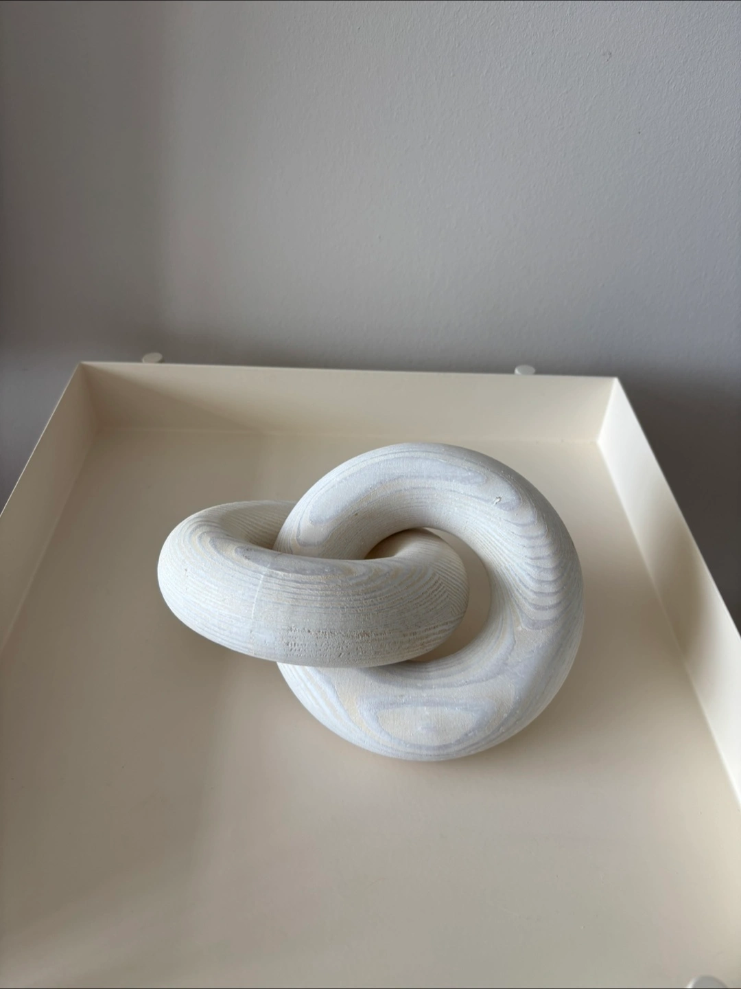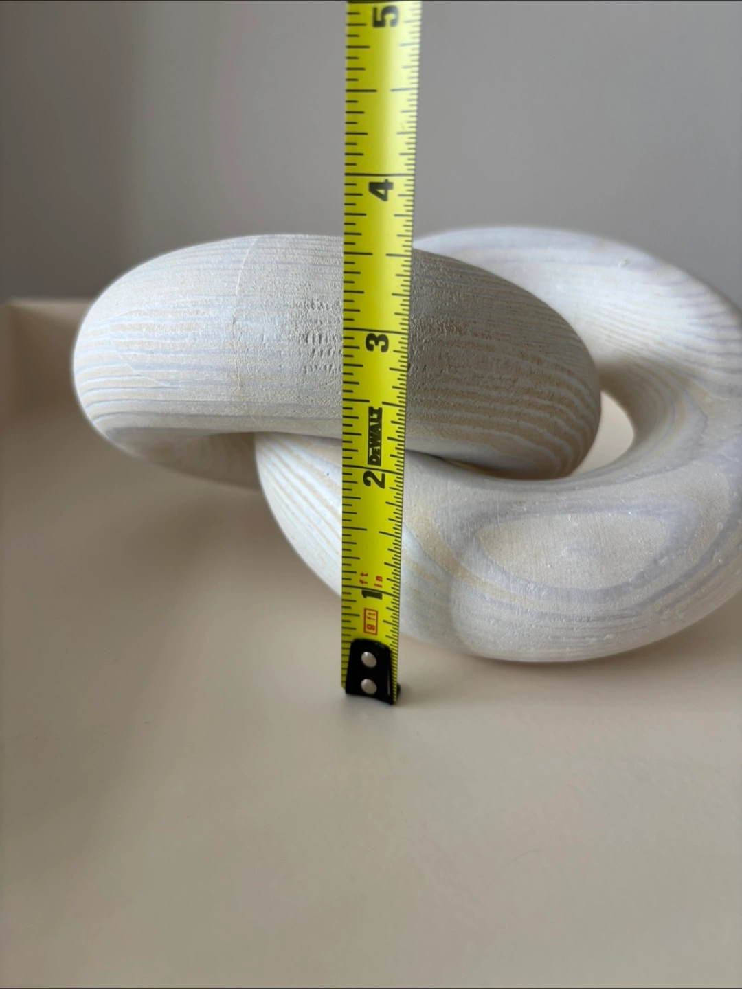 Selling a lovely decorative wood chain link. It's in great condition and would look amazing on a coffee table or shelf! The links are about 7 inches long and 3.5 inches tall.