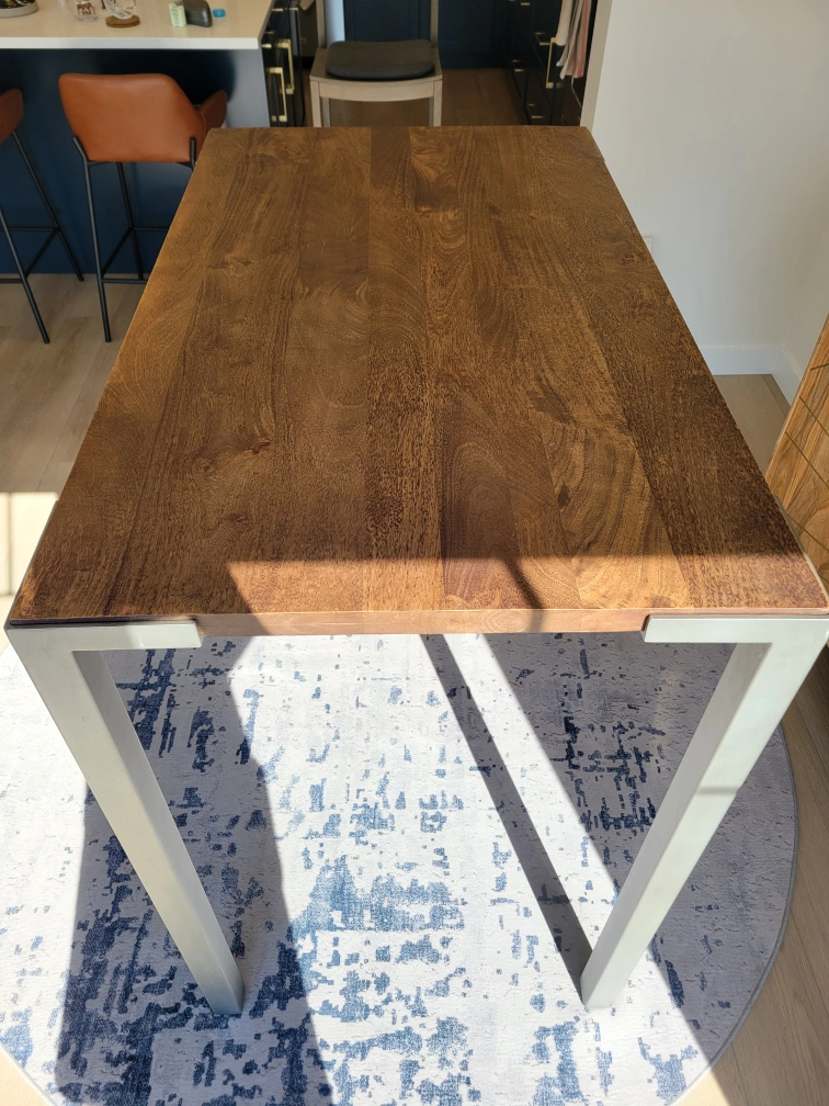 Selling a wood dining table, purchased from CB2. It's in great condition, a couple light surface scratches and ready for a new home! The table has a beautiful wood grain finish and sturdy metal legs. Dimensions: 48"L x 28 1/4"W x 42" H. Pickup in Greenwich NW.
