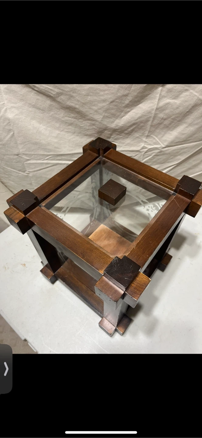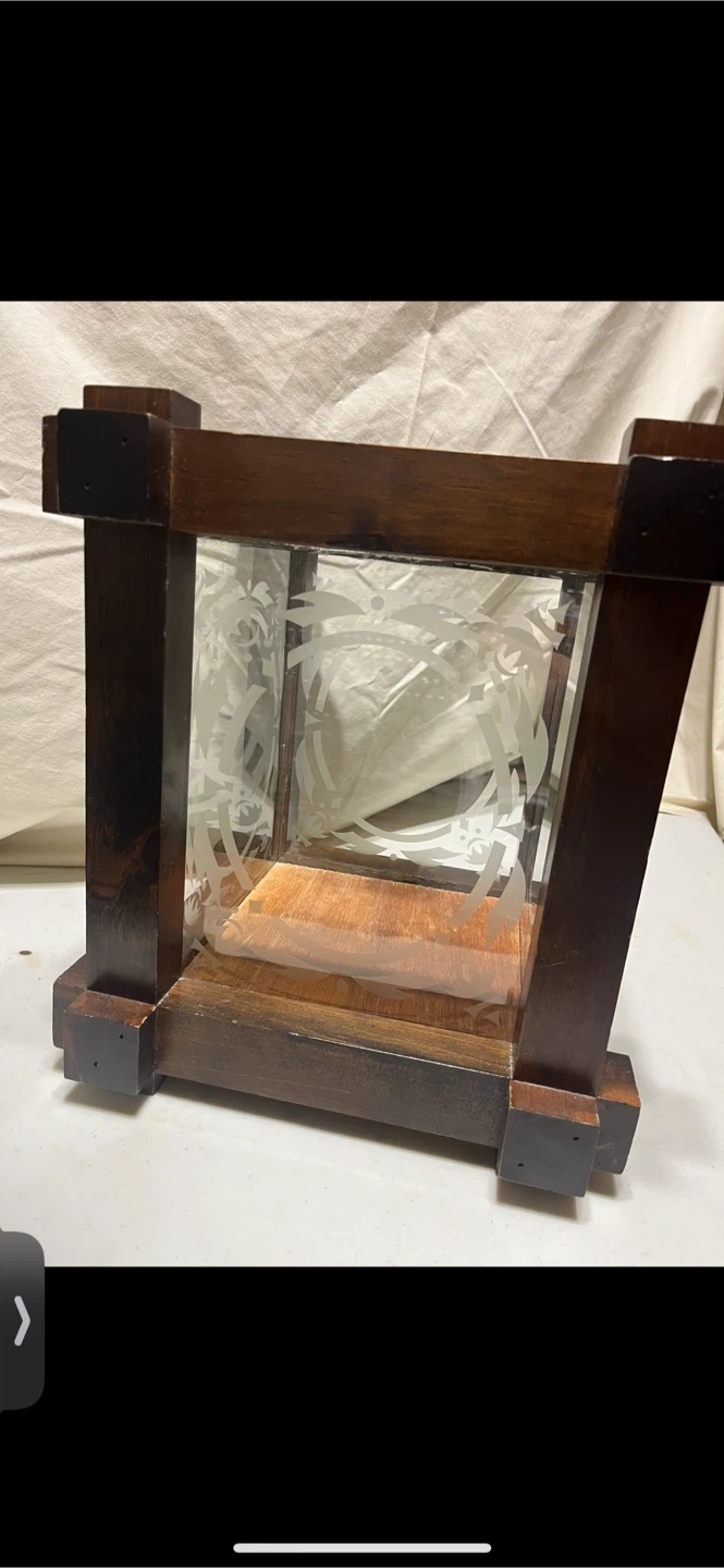 10This is a wood and glass terrarium. It is in good condition and would look great with some plants or decorations inside.