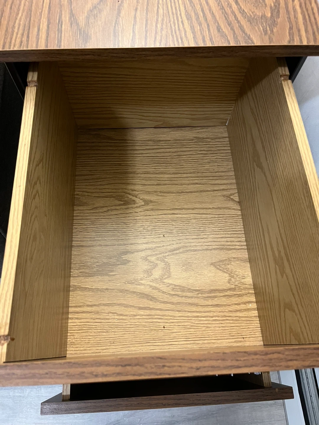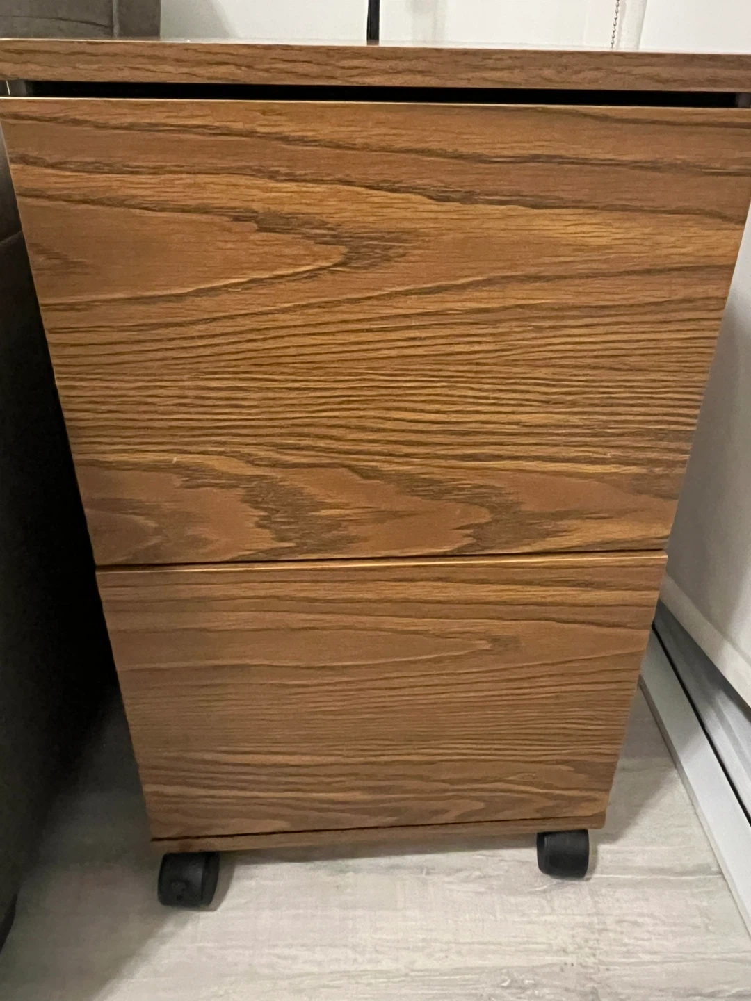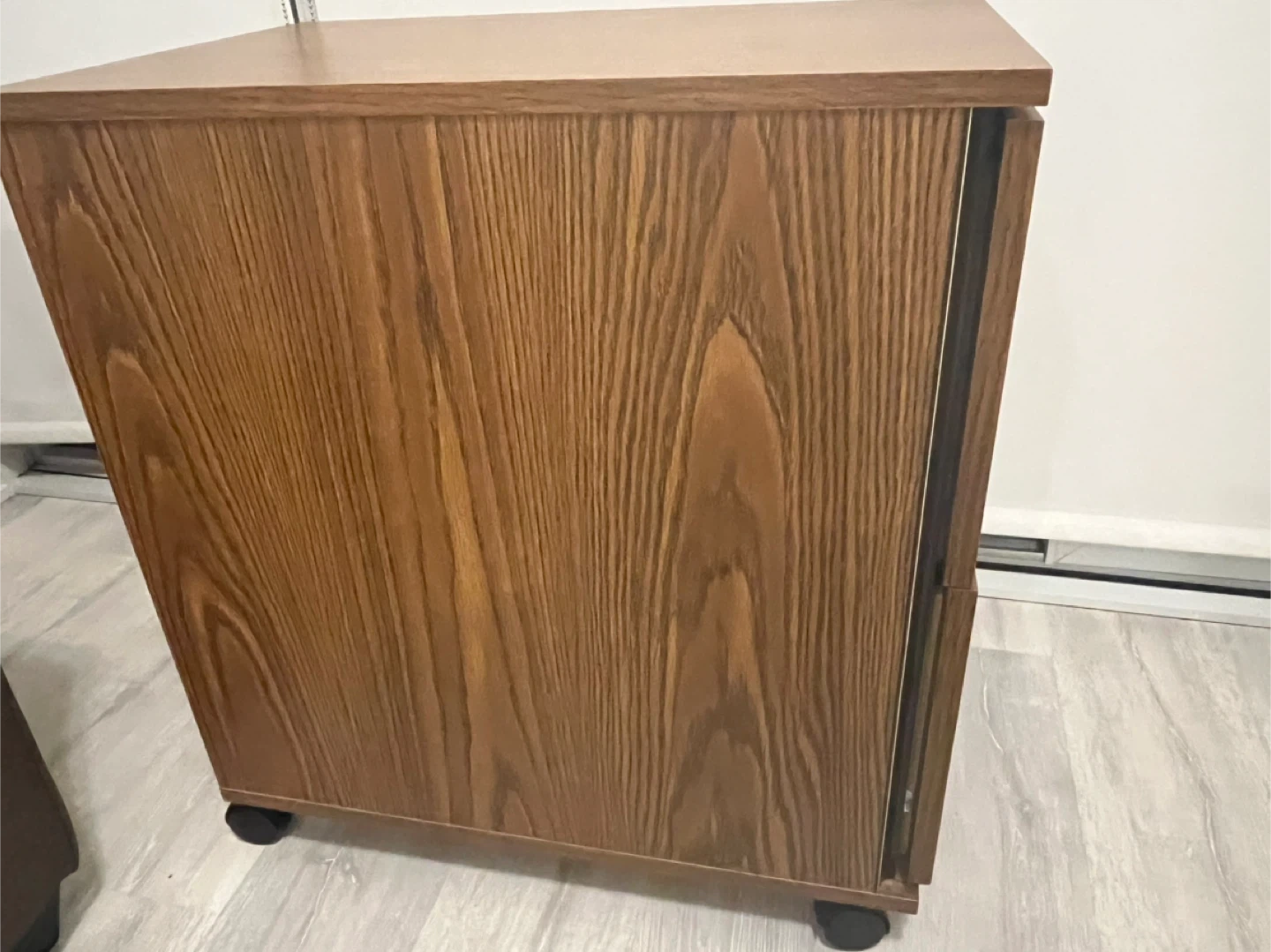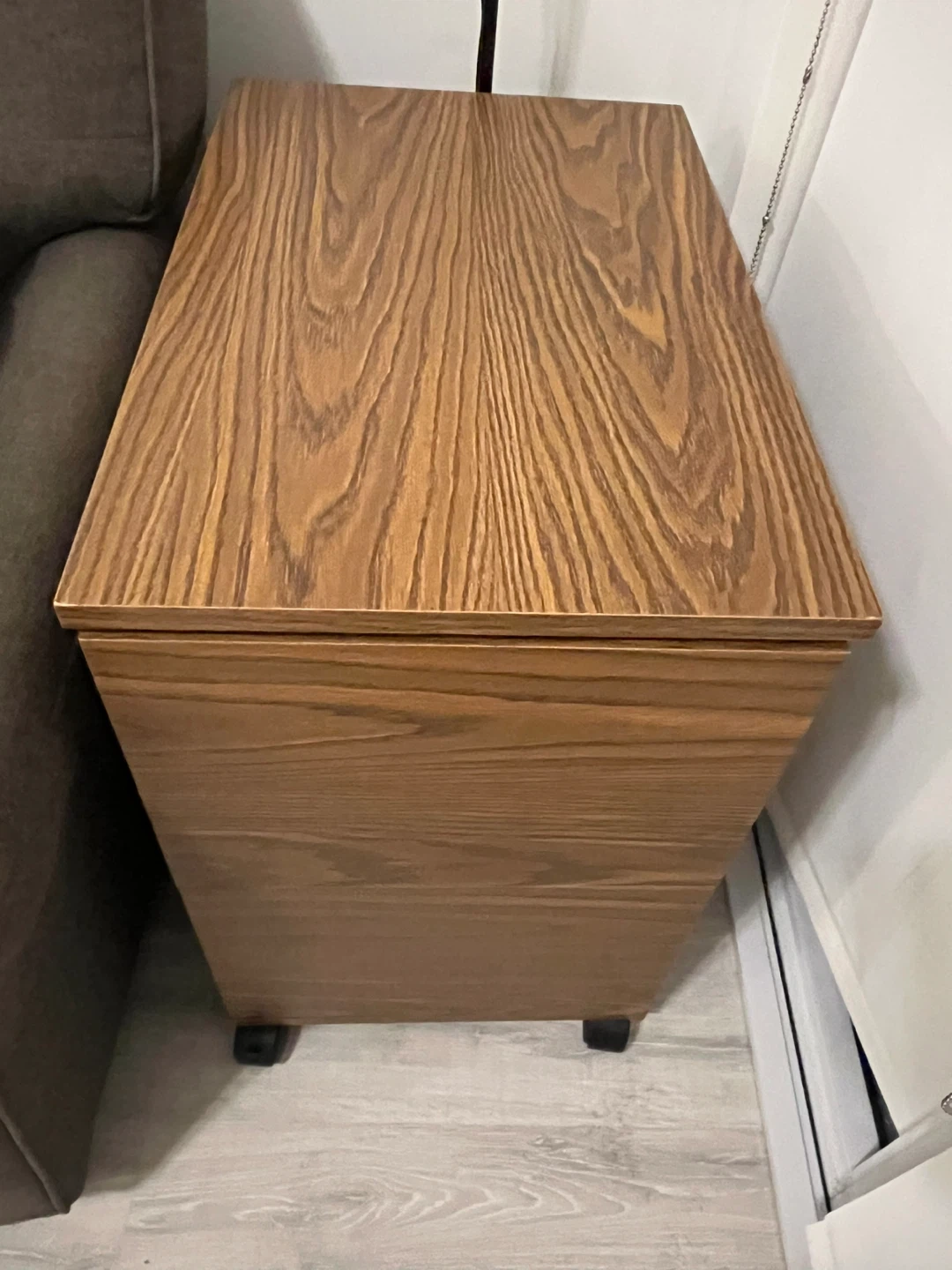 Here's a wood rolling file cabinet. It has a warm, natural wood grain finish and is in great shape. Perfect for keeping your documents organized and easily accessible! Can be used as a nightstand too!! Pick up/delivery available in the Mississauga /Yorkdale area