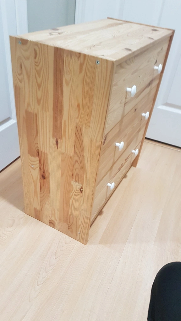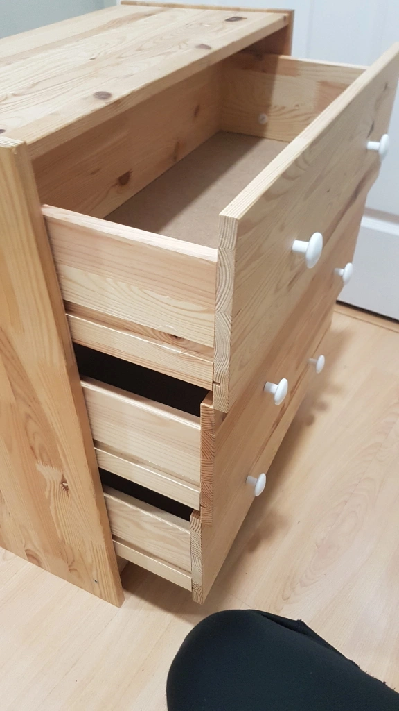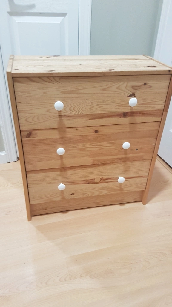 63Here's a wooden dresser with three drawers! It's perfect for adding some extra storage to your bedroom or living space. The drawers slide smoothly, and the natural wood finish gives it a warm, inviting look.