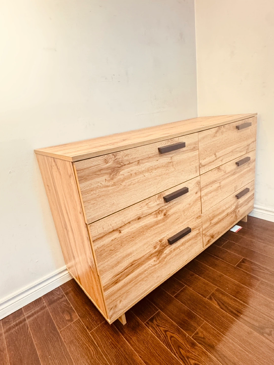65Here's a lovely wooden dresser with six drawers. It's in great shape and ready for a new home. Perfect for adding some extra storage space to your bedroom or living area Dimensions and weight : 51.25" (W) x 18.75" (D) x 31.25" (H) Excellent condition.