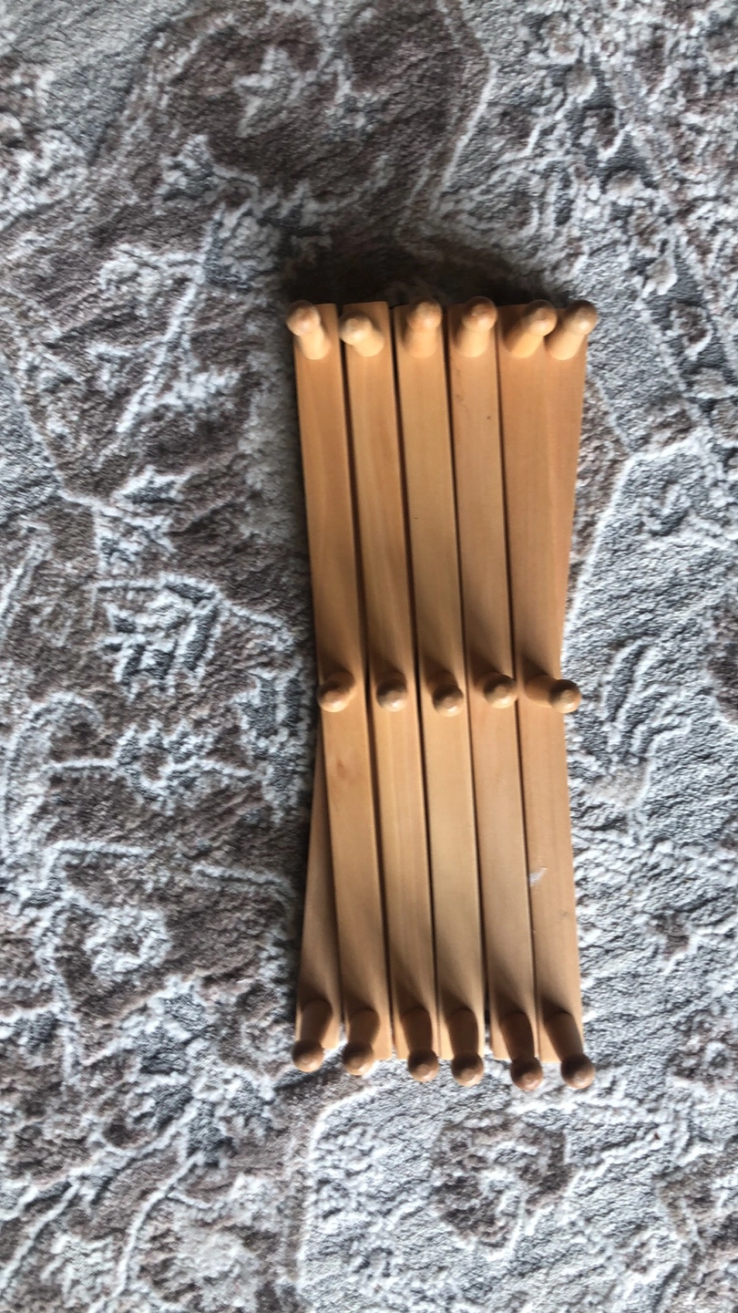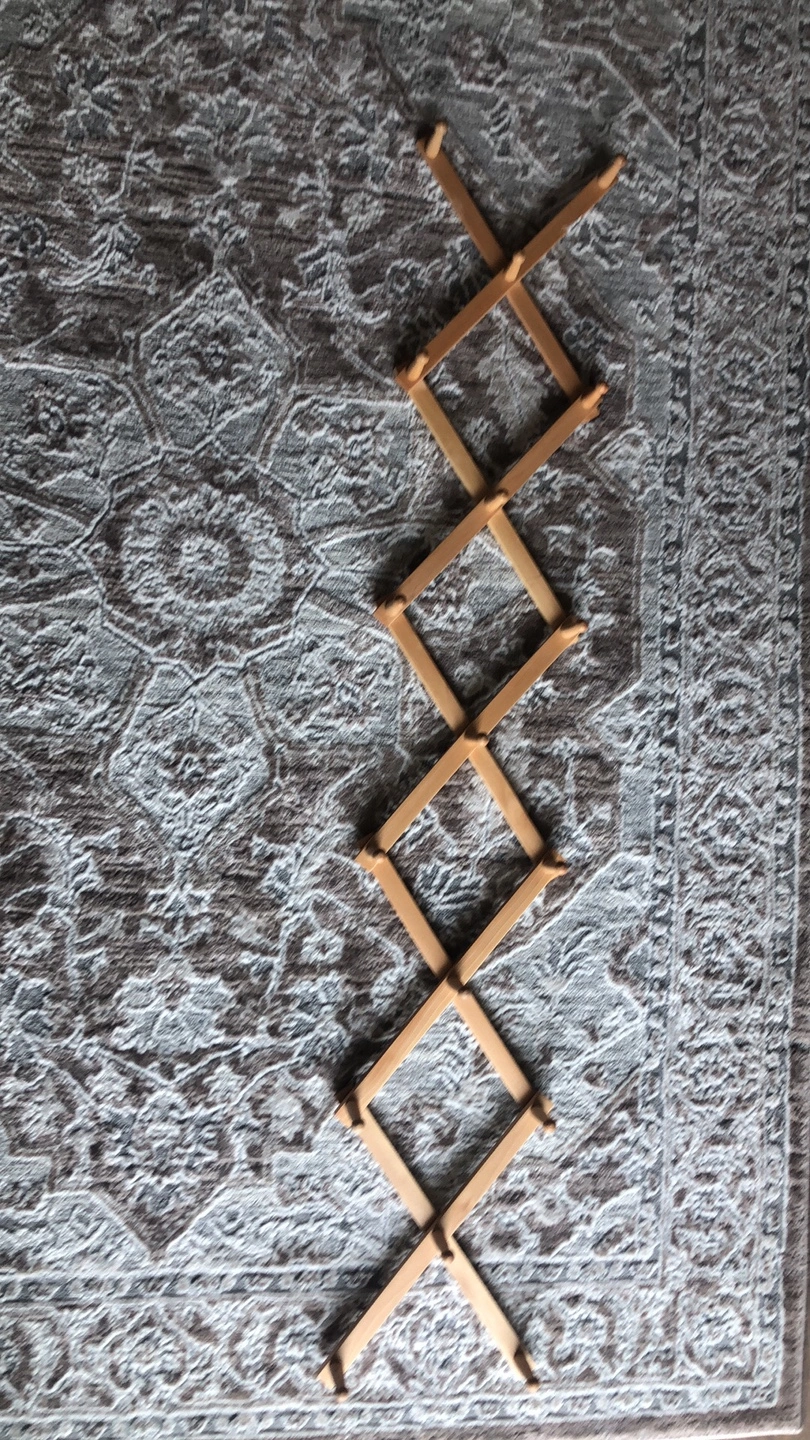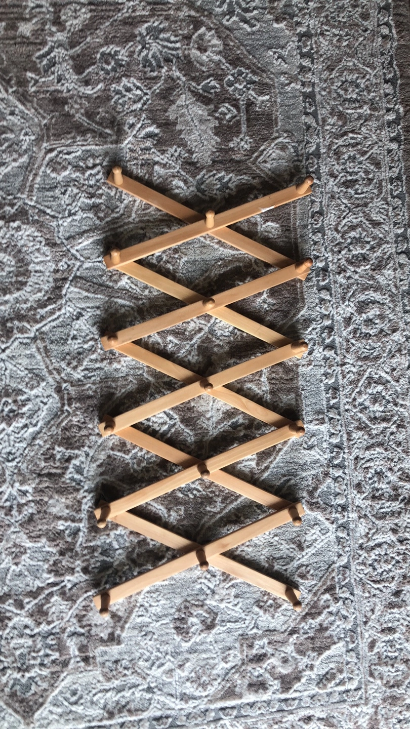 Selling a wooden accordion-style wall rack. It's in great shape and ready to add some rustic charm to your home. Perfect for hanging coats, hats, or even displaying small plants. The accordion design allows you to adjust the width to fit your space