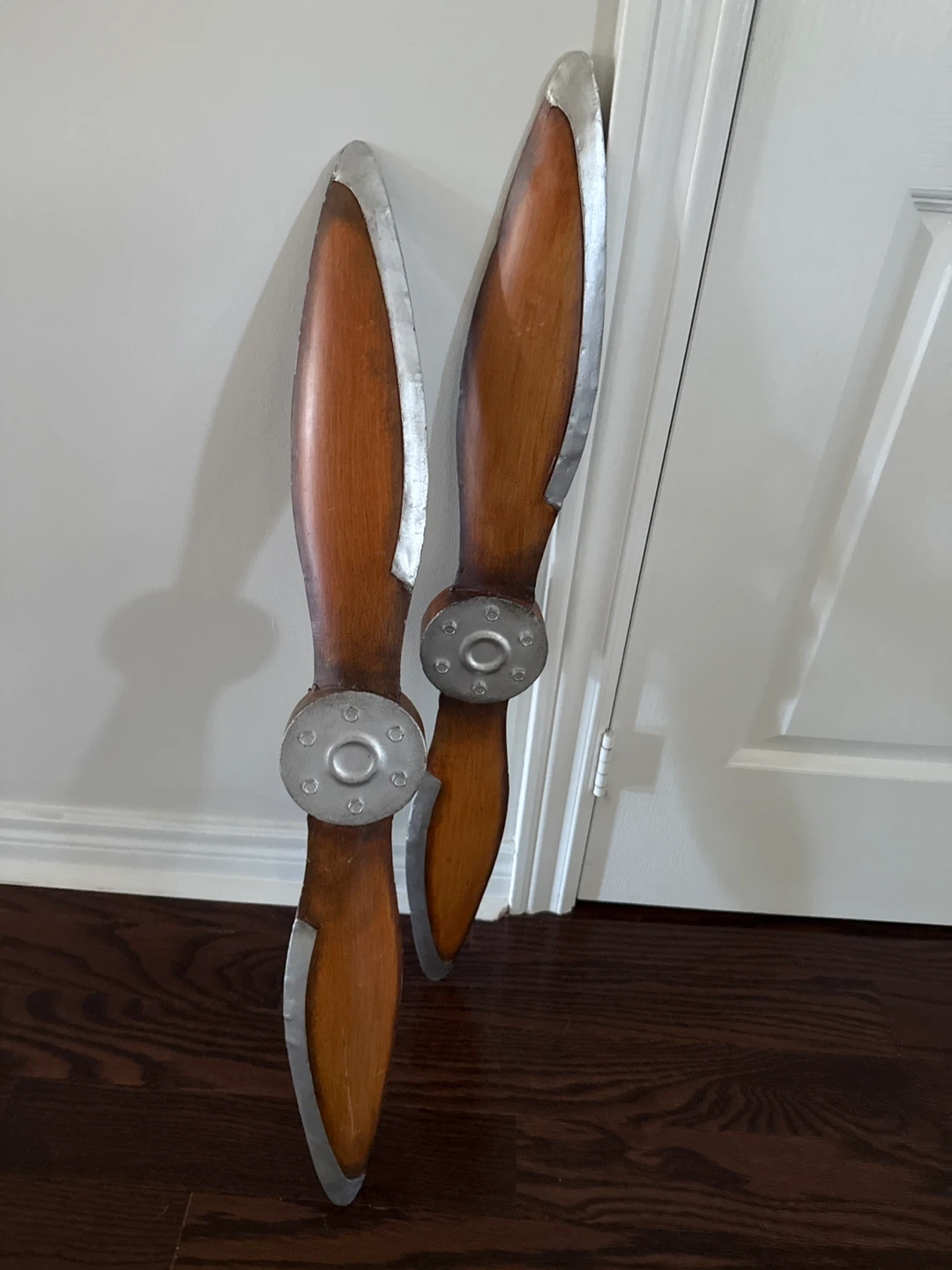 Here are two wooden airplane propellers! They would be great as decor for any aviation enthusiast