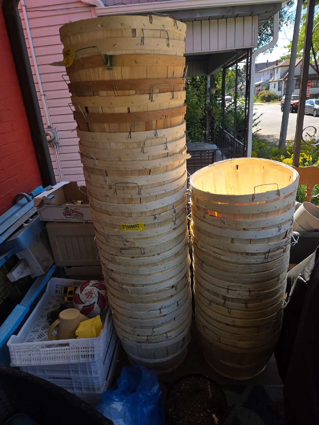 15Selling a stack of wooden apple picking baskets. They're in good condition and ready for the fall harvest! Perfect for apple picking, storage, or even as decorative items around the home or garden