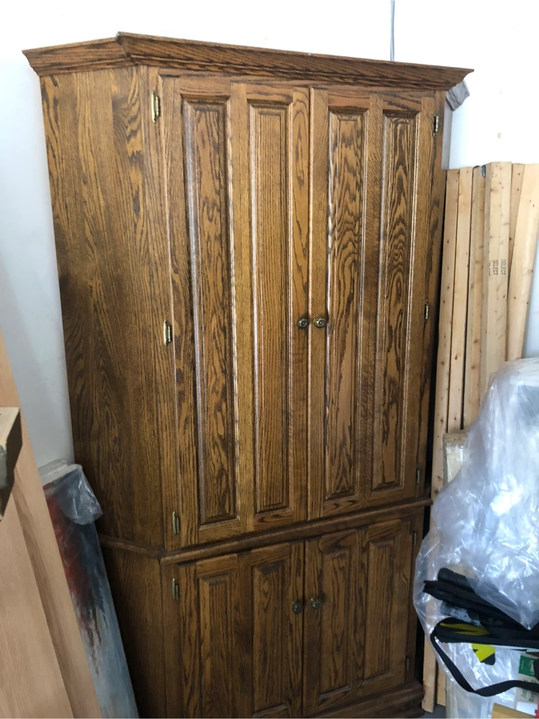 33This wooden armoire is perfect for adding some extra storage to your home. It features both cabinet and drawer space, making it versatile for different storage needs. It's in good condition and ready for a new home!