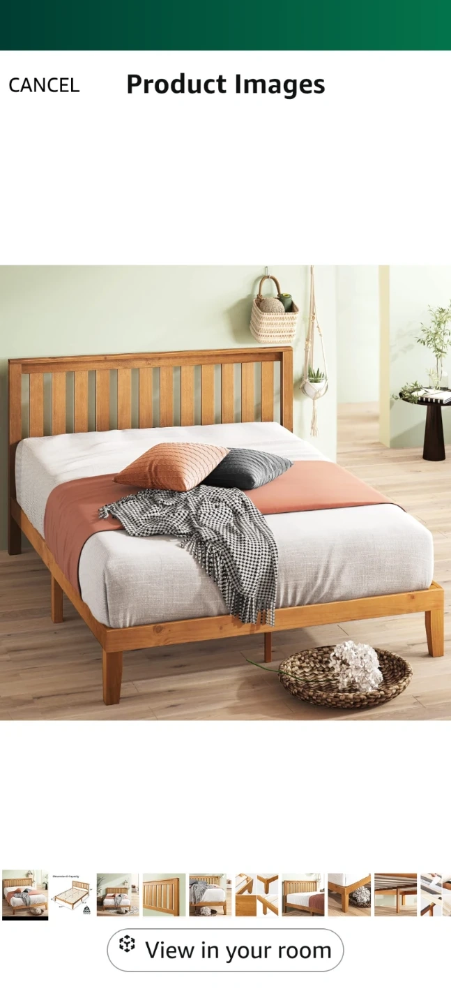114Wooden bed frame in great condition! It's a platform bed, so no box spring is needed. Perfect for adding a touch of natural warmth to your bedroom. It's not going with the headboard, you need to buy one to put the bed together.