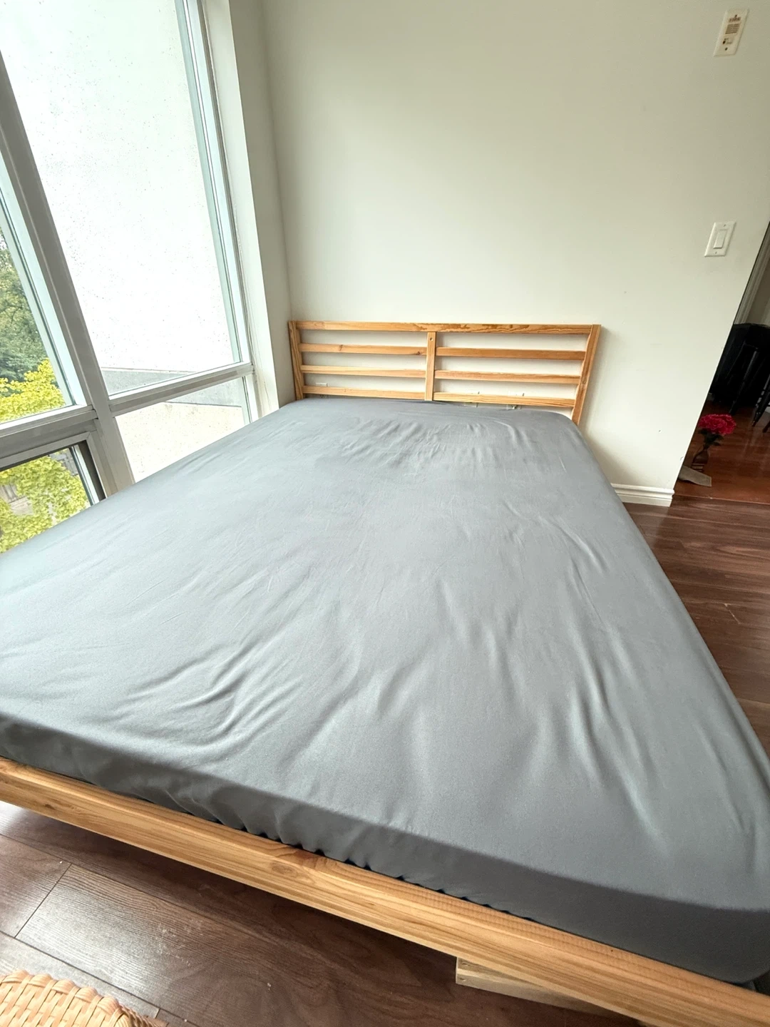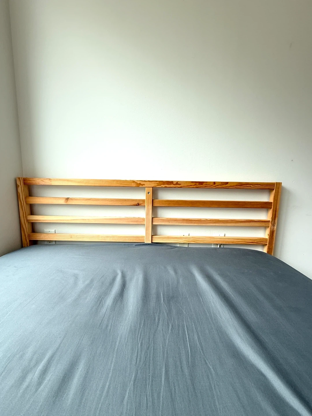 20Selling an Ikea queen-size wooden bed frame. It's in great condition and ready for a new home! The frame has a simple, clean design that would fit well in any bedroom. It's sturdy and provides excellent support.