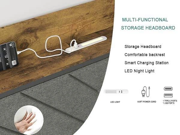 Brand New and Limited Time Sale: Queen: $140 (50% OFF) King: $160 (50% OFF) Features: β€’πŸ›οΈ Smart Storage Headboard – Compartments + 2 USB ports for phones β€’πŸ’‘ LED Night Light – Soft glow for reading & safe late-night trips β€’πŸ“¦ Spacious Storage – 11” underbed clearance, perfect for bins or vacuums β€’πŸ› οΈ Heavy-Duty Build – 13 metal slats + 7 reinforced legs, supports up to 1000 lbs β€’βœ¨ Cozy Upholstery – Linen fabric + memory foam headboard for comfort ‒⏱️ Easy Setup – Snap-fit slats, ready in just 40 minutes