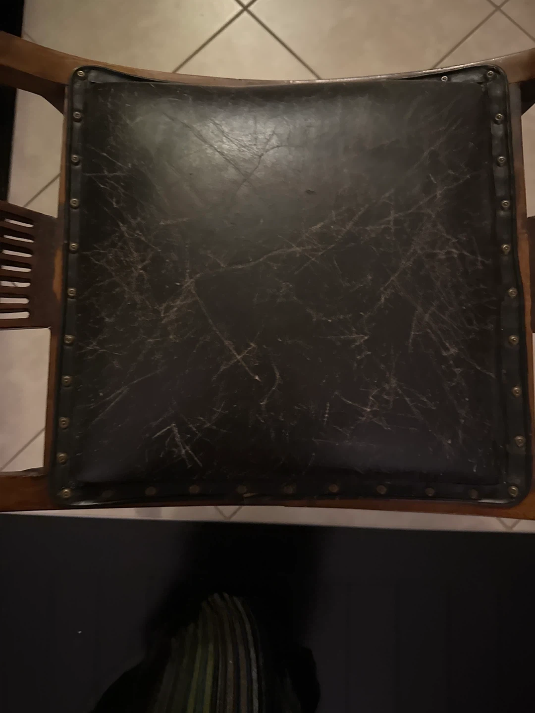 71Selling a wooden bench with a black leather seat. It's perfect for adding a touch of classic style to any room. The bench shows some signs of wear on the seat, but it's still sturdy and comfortable