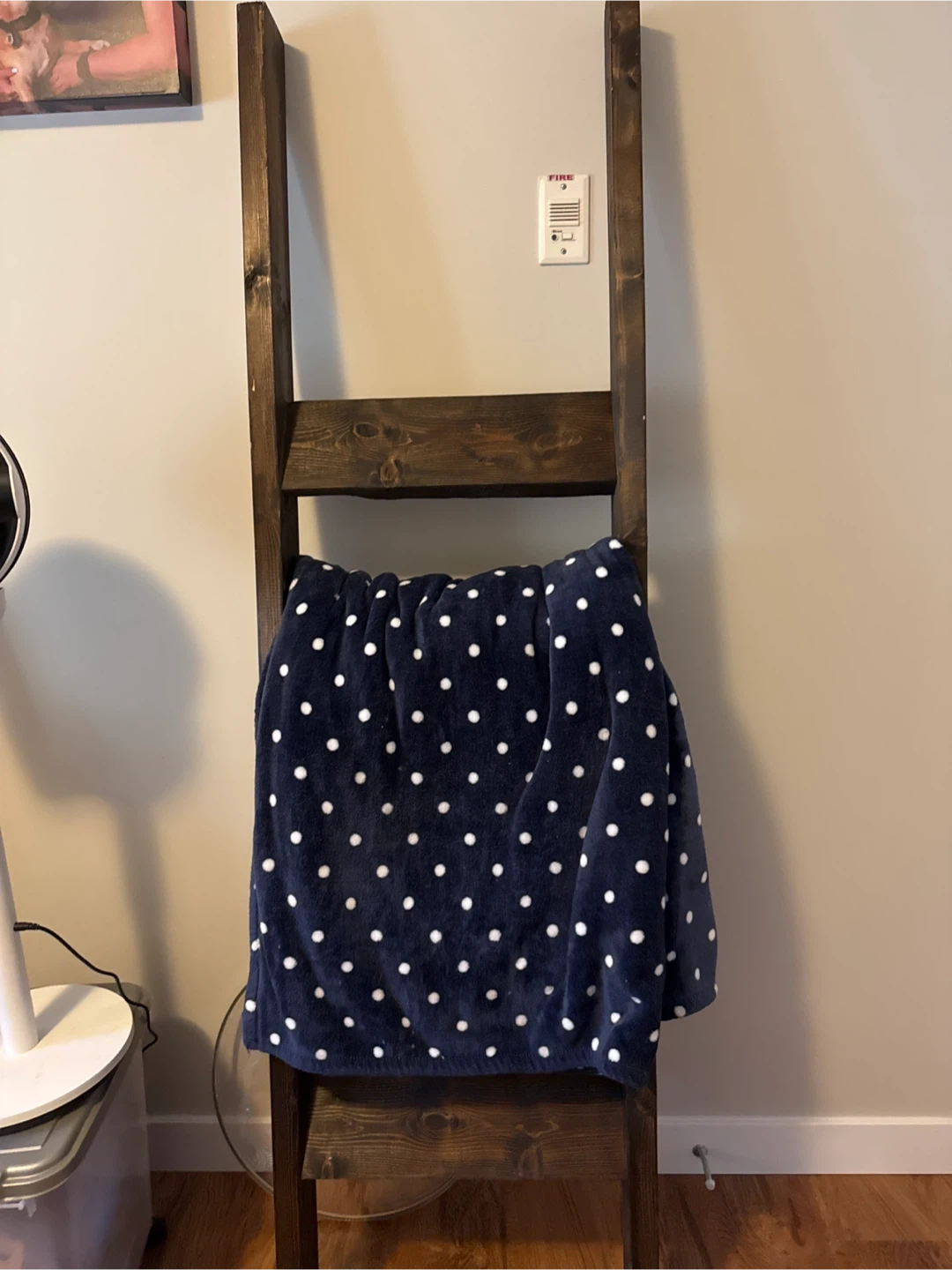 Selling a dark brown wooden blanket ladder! It's in great shape and perfect for adding a touch of rustic charm to your home while keeping your blankets organized. It's a stylish and practical addition to any room blanket doesn’t go with selling because I don’t want it
