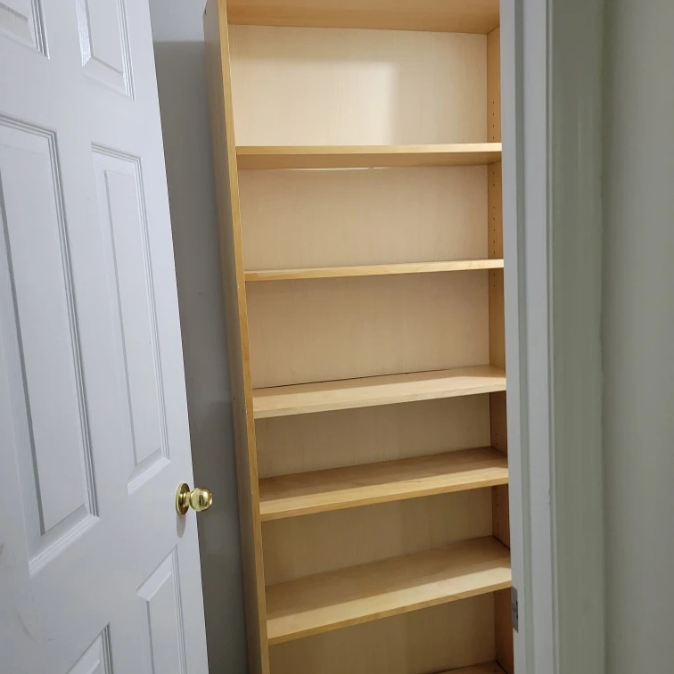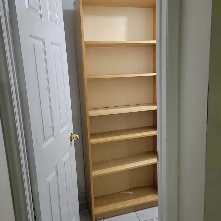 109Selling a wooden bookcase in good condition. It's perfect for storing books or displaying items. It has multiple shelves to maximize storage space 3 available dimensions height around 80 inches wide 30 inches depth 12 inches 59$ each