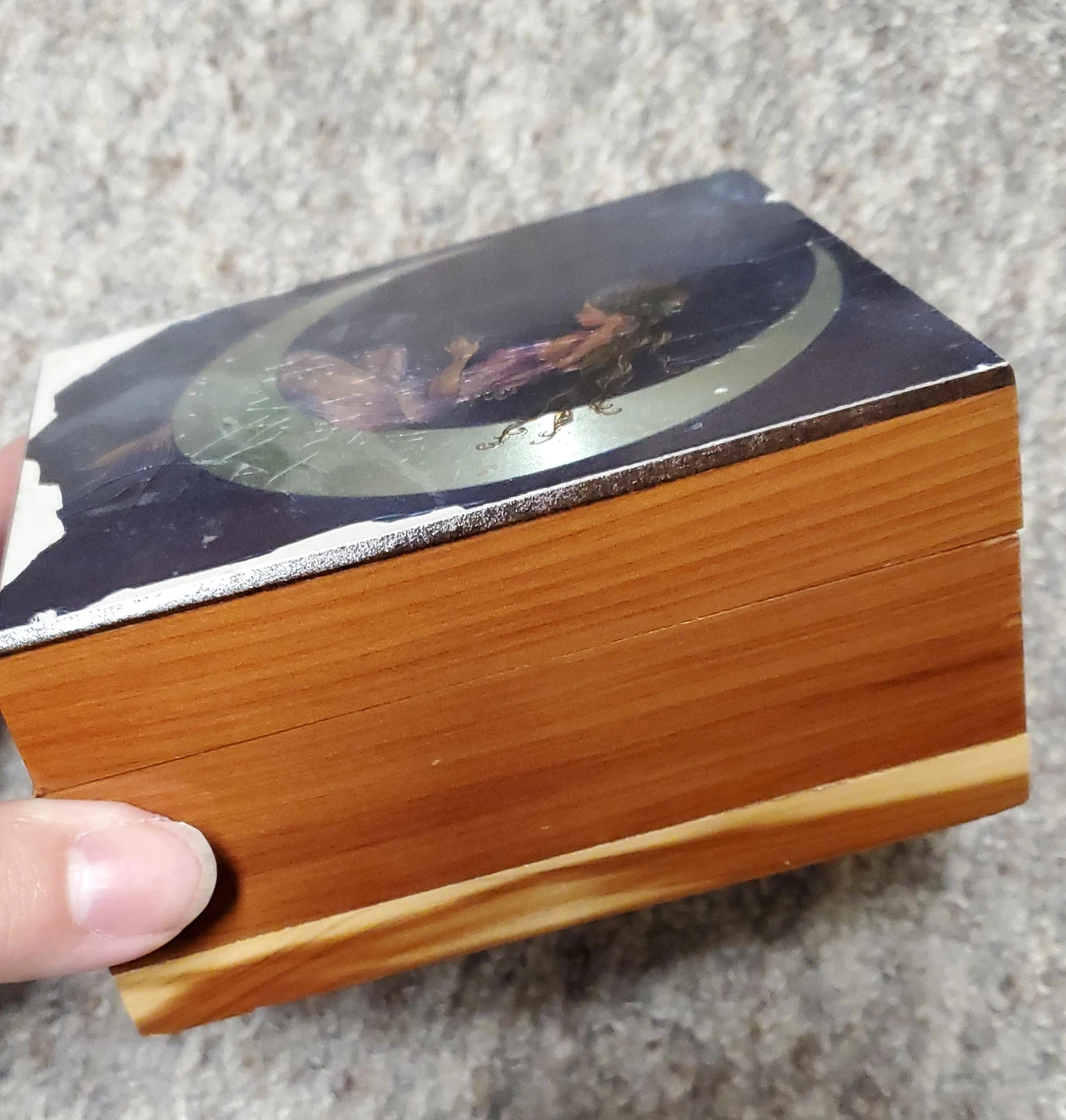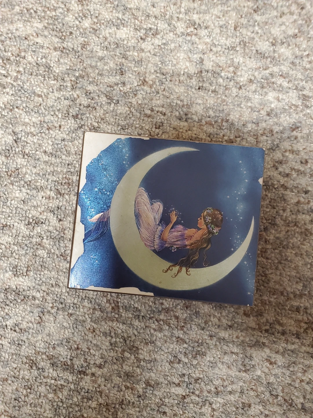 0I'm selling a cute wooden box that has a moon design on top. It's perfect for storing small items or as a decorative piece. It's in good condition and ready for a new home!