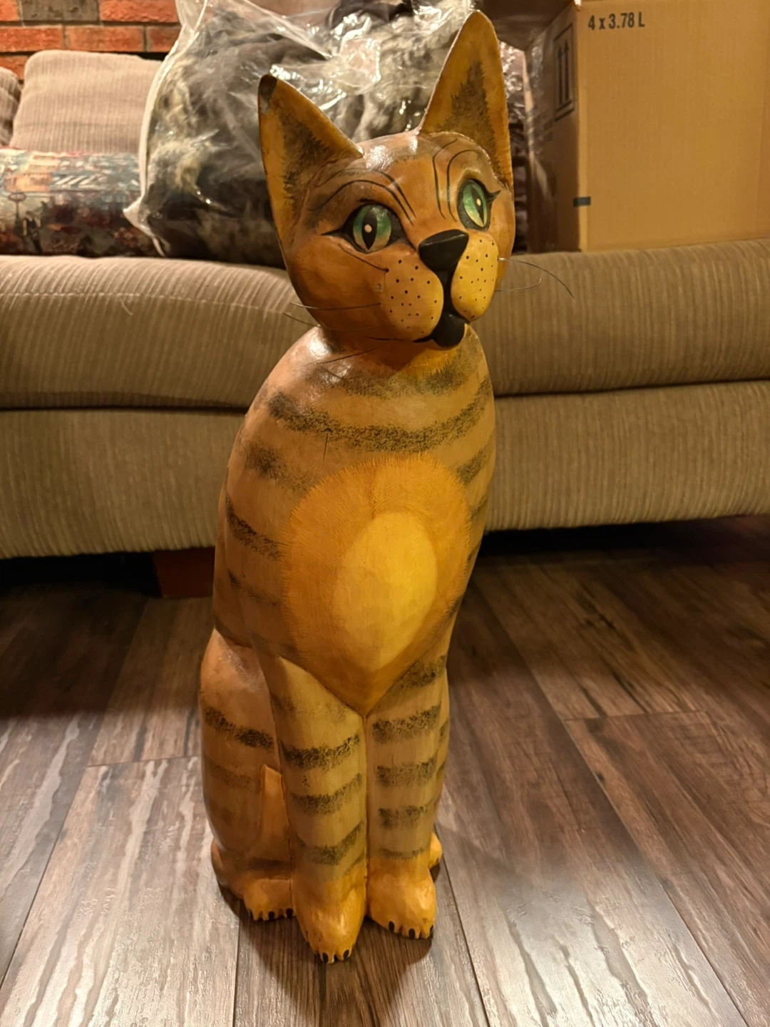 111Here's a charming wooden cat statue, perfect for adding a touch of whimsy to your home decor! It's in great condition and ready to find a new home.