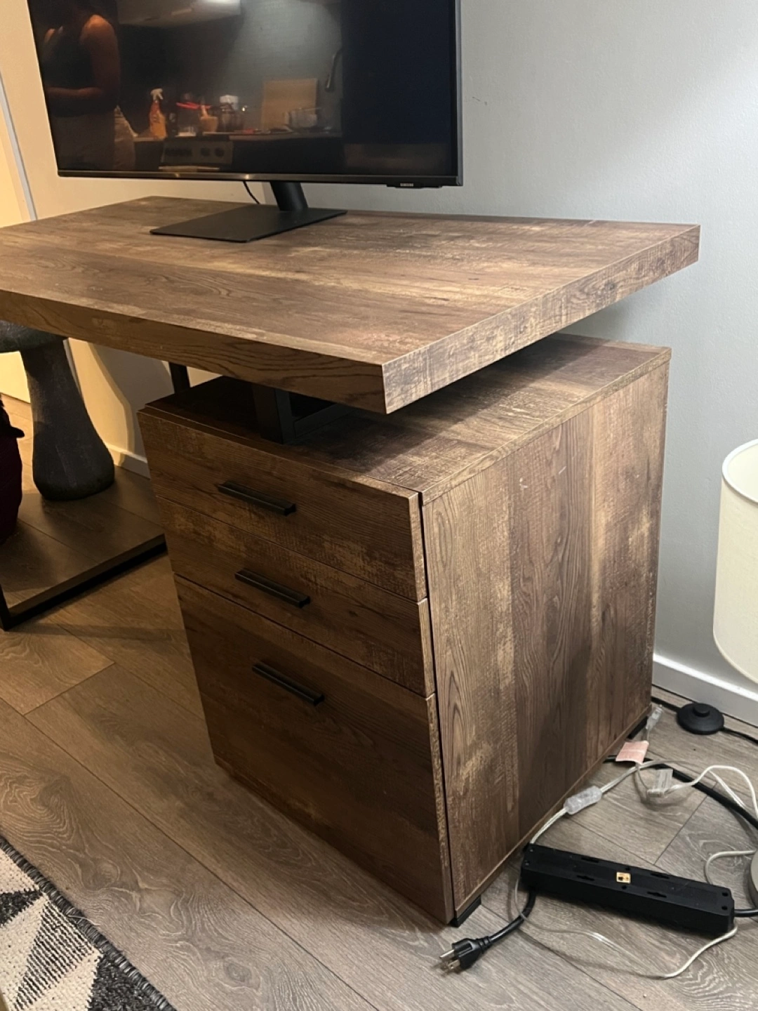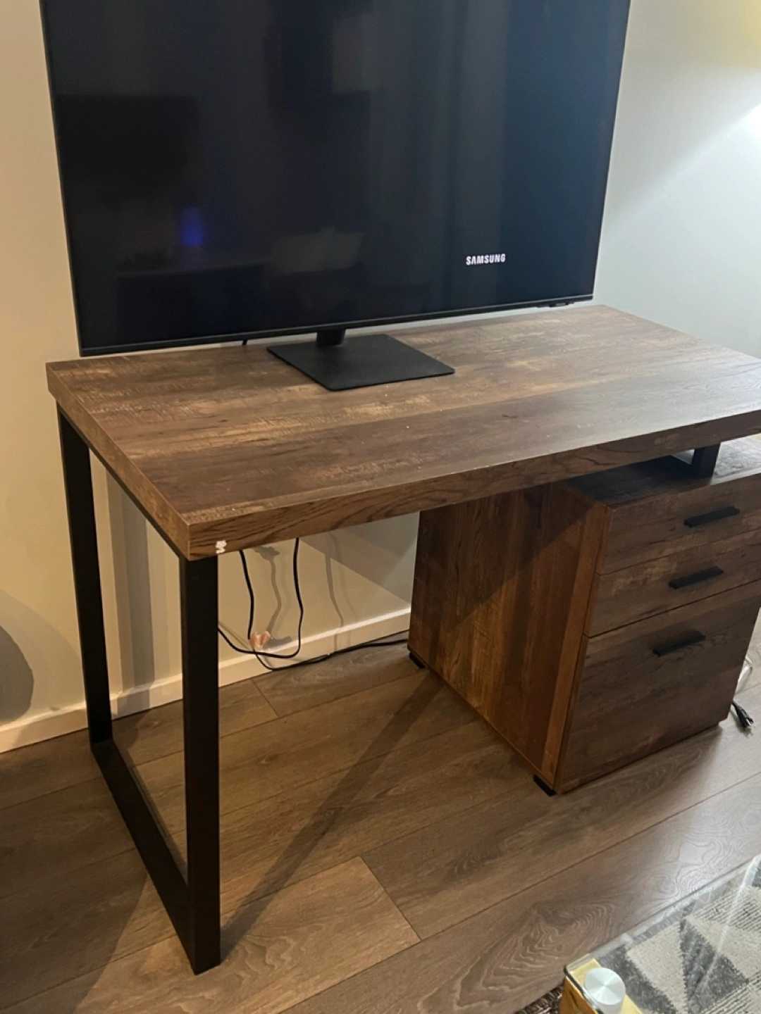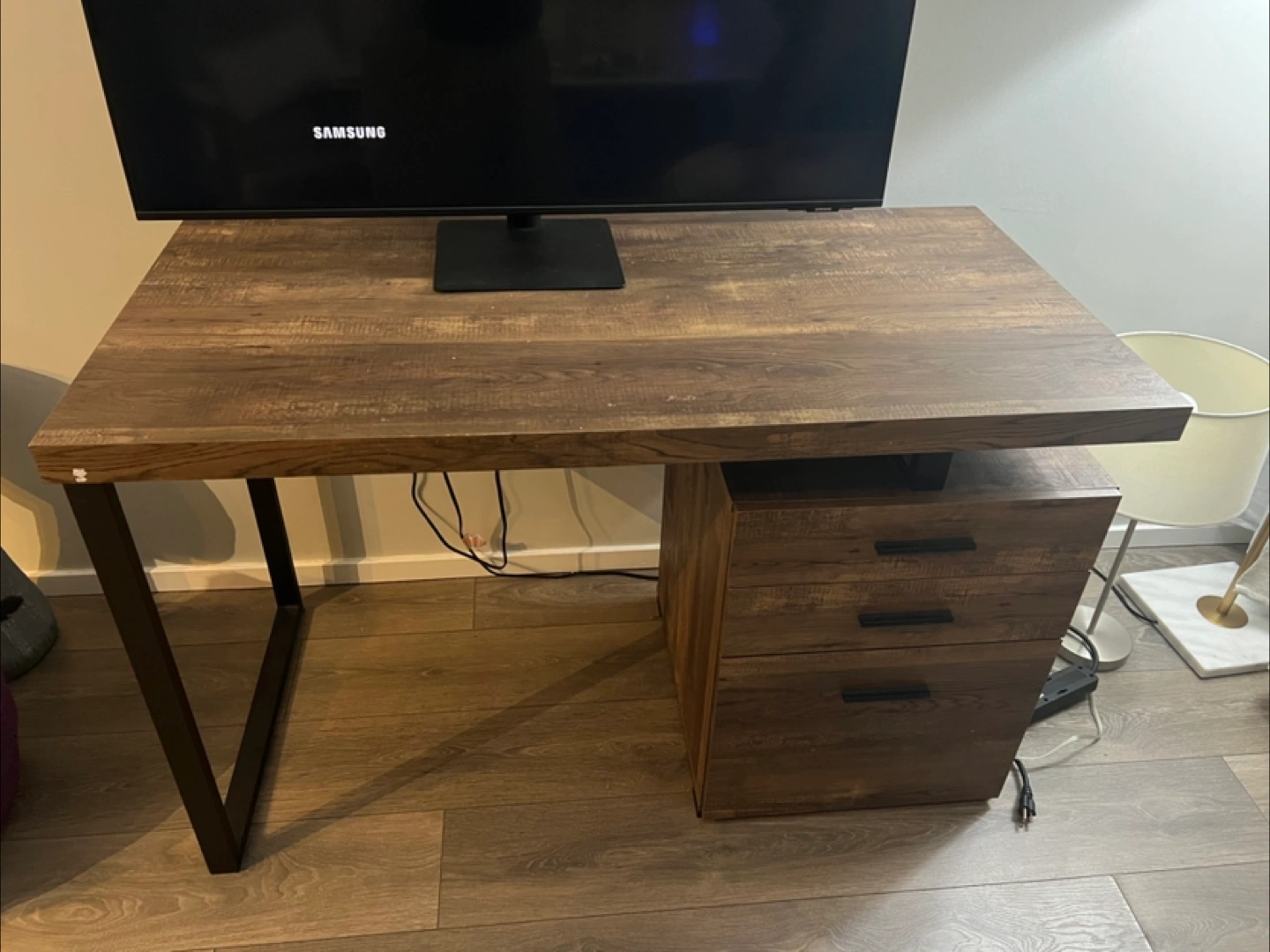 Selling a sturdy wood and metal desk with built-in drawers! It's in great shape and perfect for a home office or study space. The drawers provide ample storage, and the wood finish gives it a warm, inviting look. Sadly pick up only at location provided.