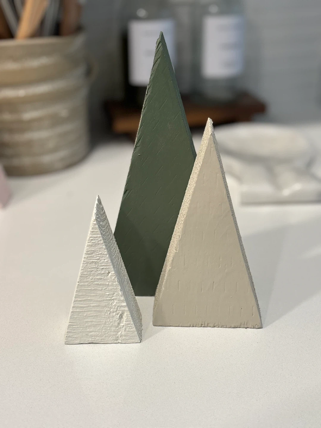 76Cute set of three wooden Christmas trees in graduated sizes and neutral colours. They'd look great on a mantel or shelf this holiday season!