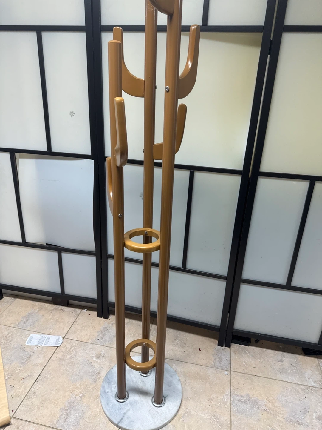 89Here's a stylish wooden coat rack that will add a touch of elegance to your entryway or bedroom. It features a sturdy marble base and a unique design with multiple hooks for coats, hats, and scarves. It's perfect for keeping your space organized and clutter-free