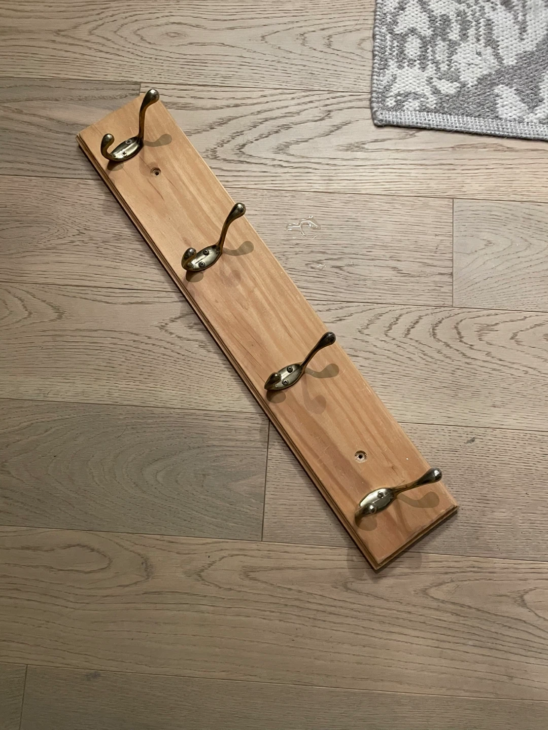 Selling a handy wooden coat rack with sturdy metal hooks! It's perfect for keeping your entryway or bedroom tidy. The rack is in great shape and ready to hold your coats, hats, and bags Cash only