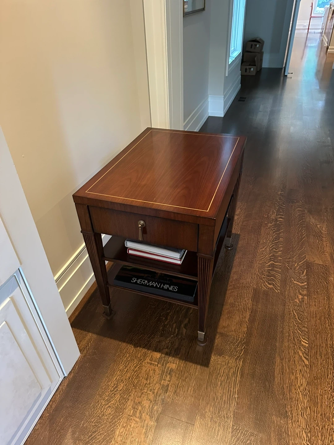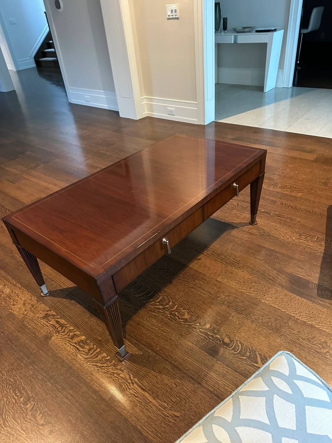 Selling a beautiful wooden coffee table! It's in great shape and would look lovely in any living room. The rich, warm tones of the wood add a touch of elegance to any space. It also has drawers for extra storage