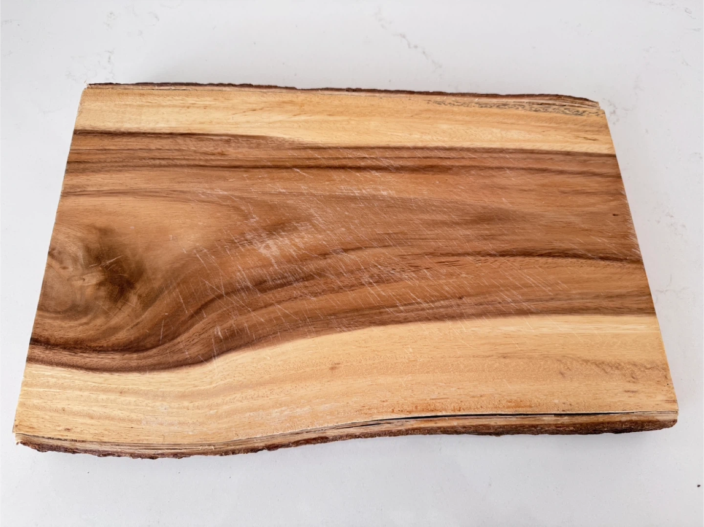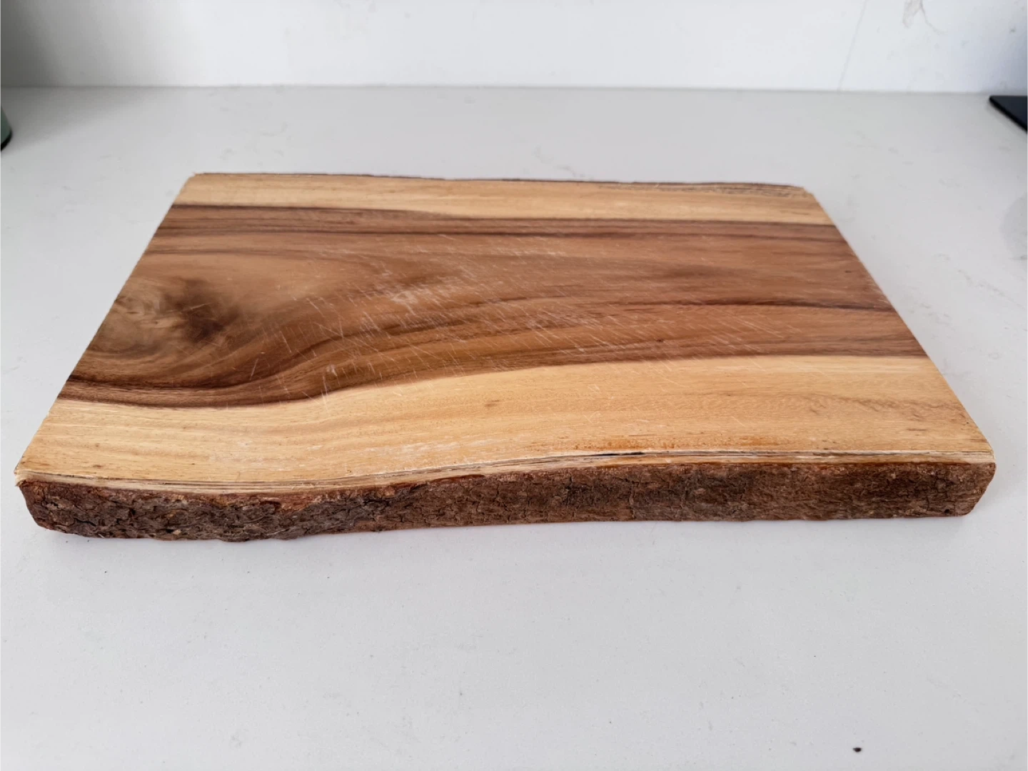 Selling a wooden cutting board. It has some signs of use, like some scratches, but is still in good condition for all your chopping needs!