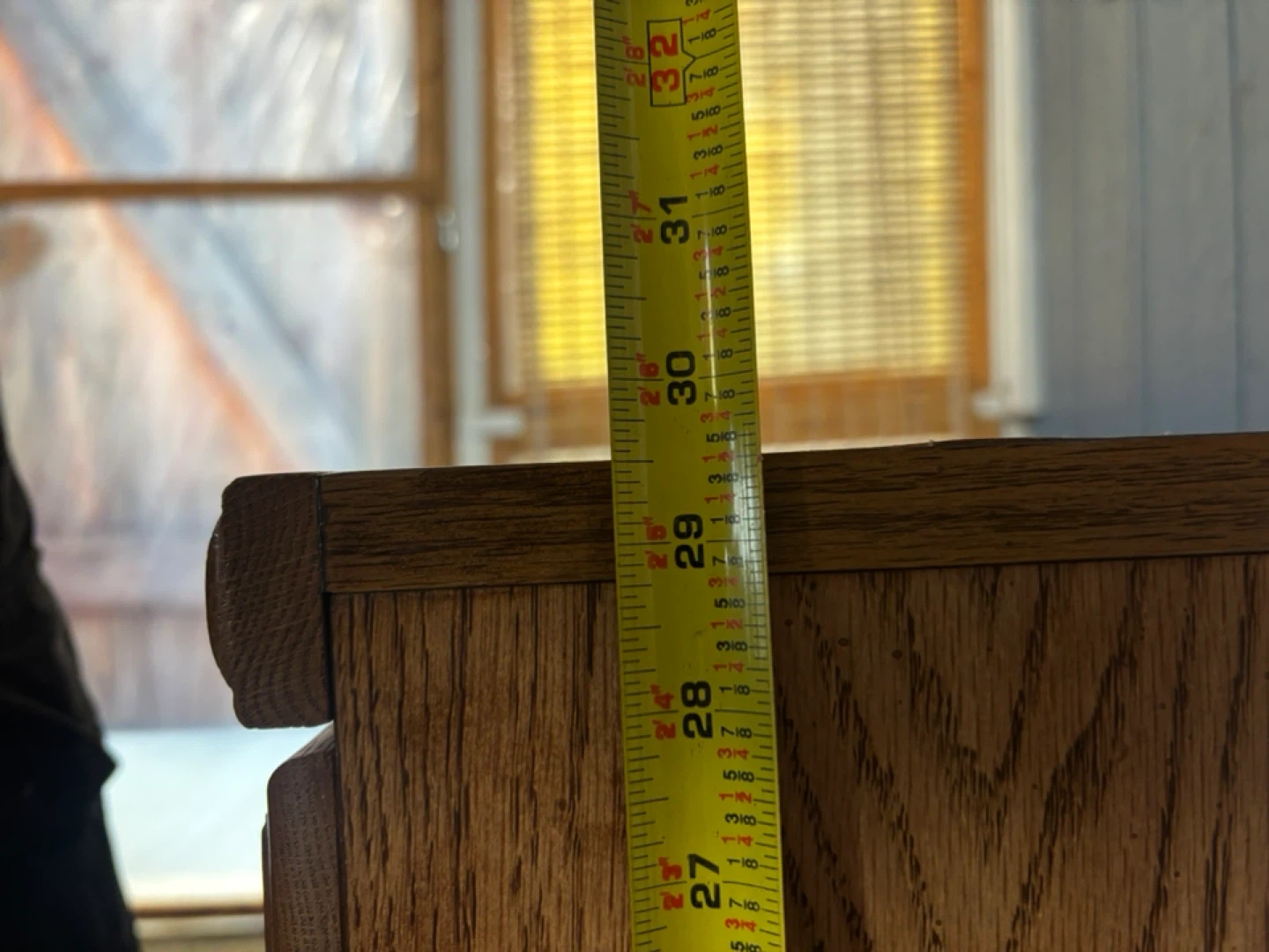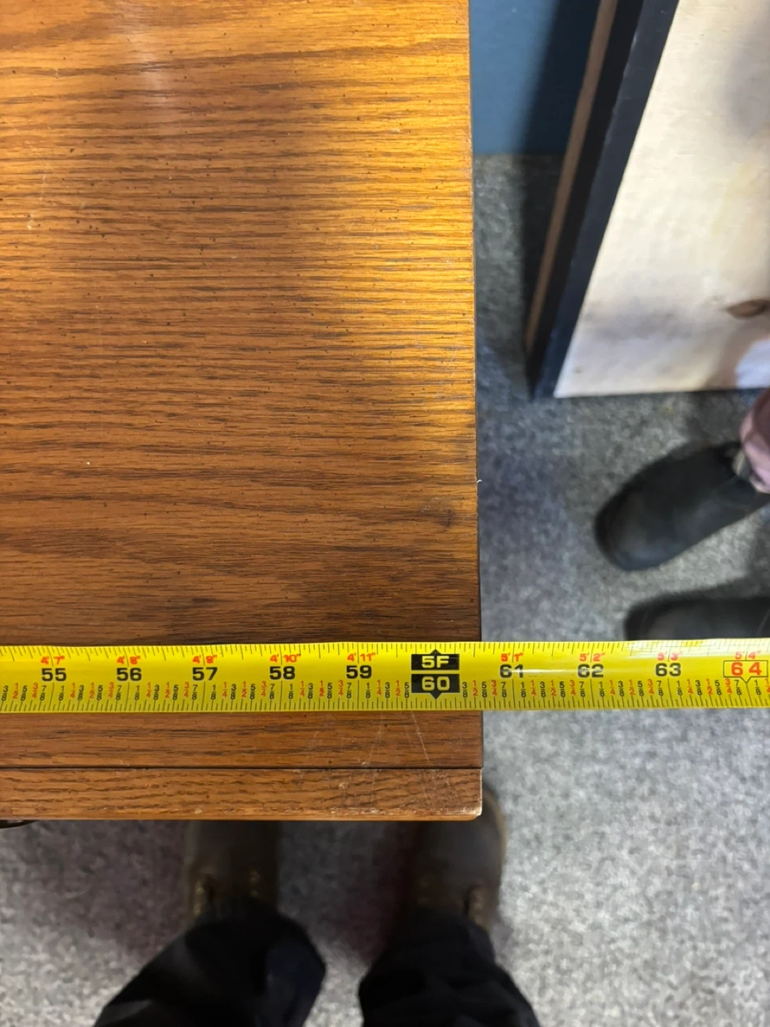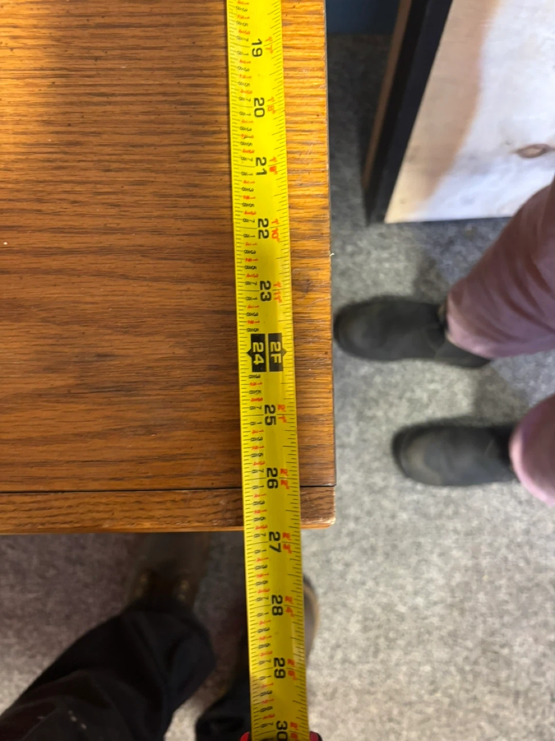 10Here's a classic wooden desk, perfect for a home office or study space! It features several drawers for storage and a pull-out keyboard tray. The desk measures approximately 30 inches in height and 48 inches in width. It has a warm, oak-like finish.