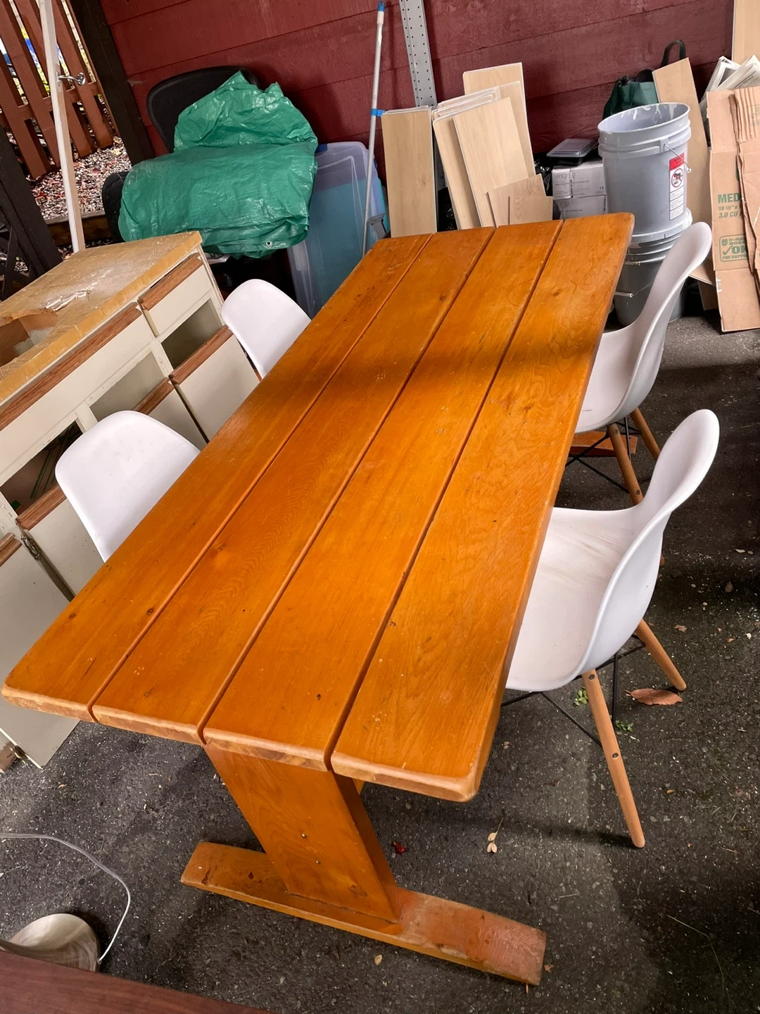 10Selling a wooden dining table with four white chairs. It's a great set for a small family or apartment. The table has a warm, natural finish, and the chairs are a simple, modern design. Perfect for creating a cozy dining space! Update. Chairs gone. Table only