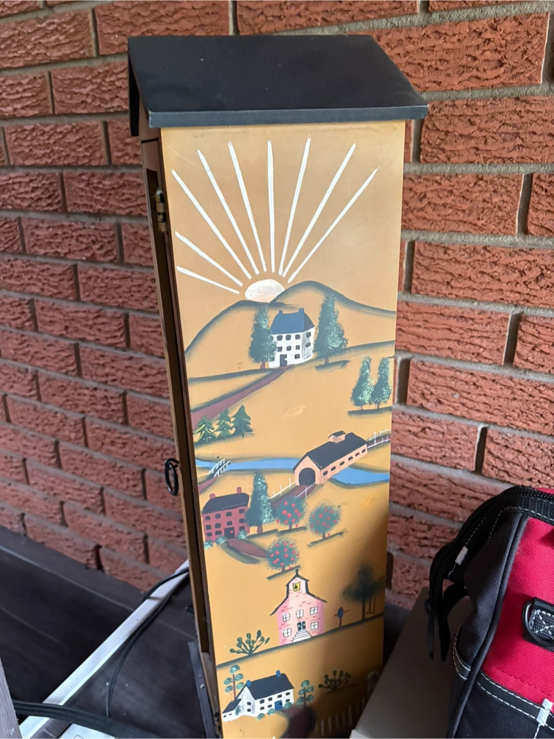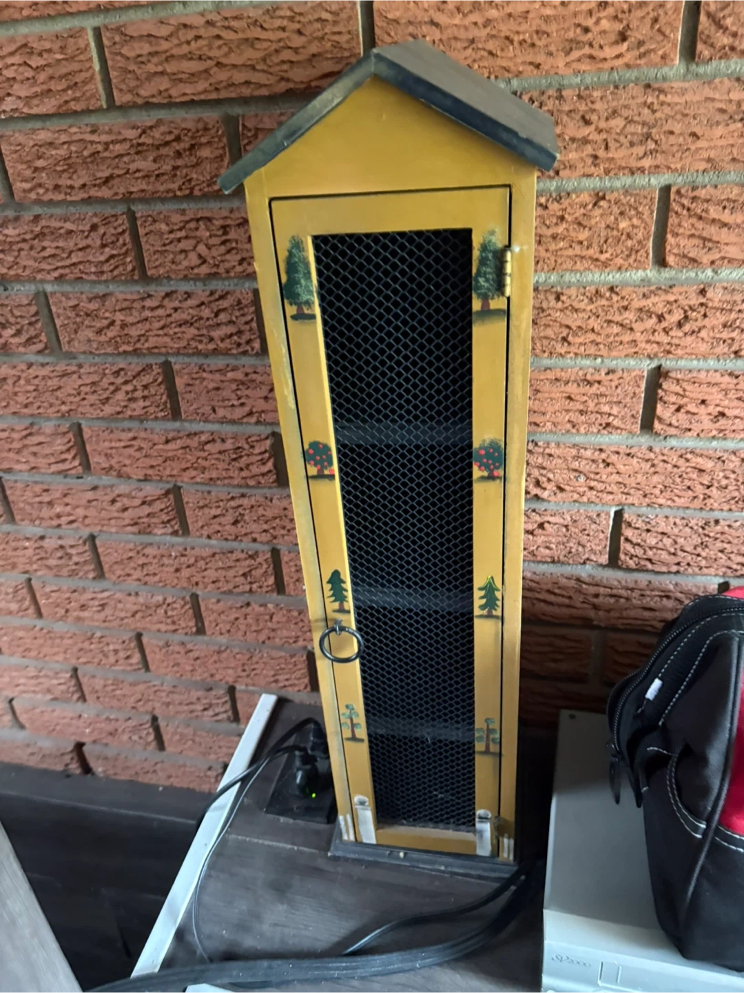 10Selling a charming wooden display cabinet! It features a unique countryside design on the front. Inside, there are several shelves, perfect for displaying your favourite items. The cabinet door has a mesh screen, adding a rustic touch to the piece cash only