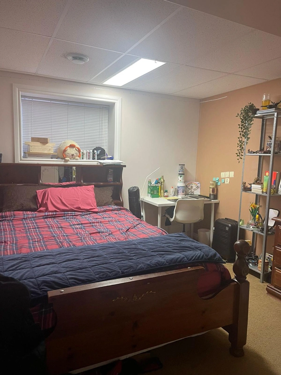10Double bed frame. Dark wood finish. Includes headboard and footboard. Some wear and tear. Solid wood construction.