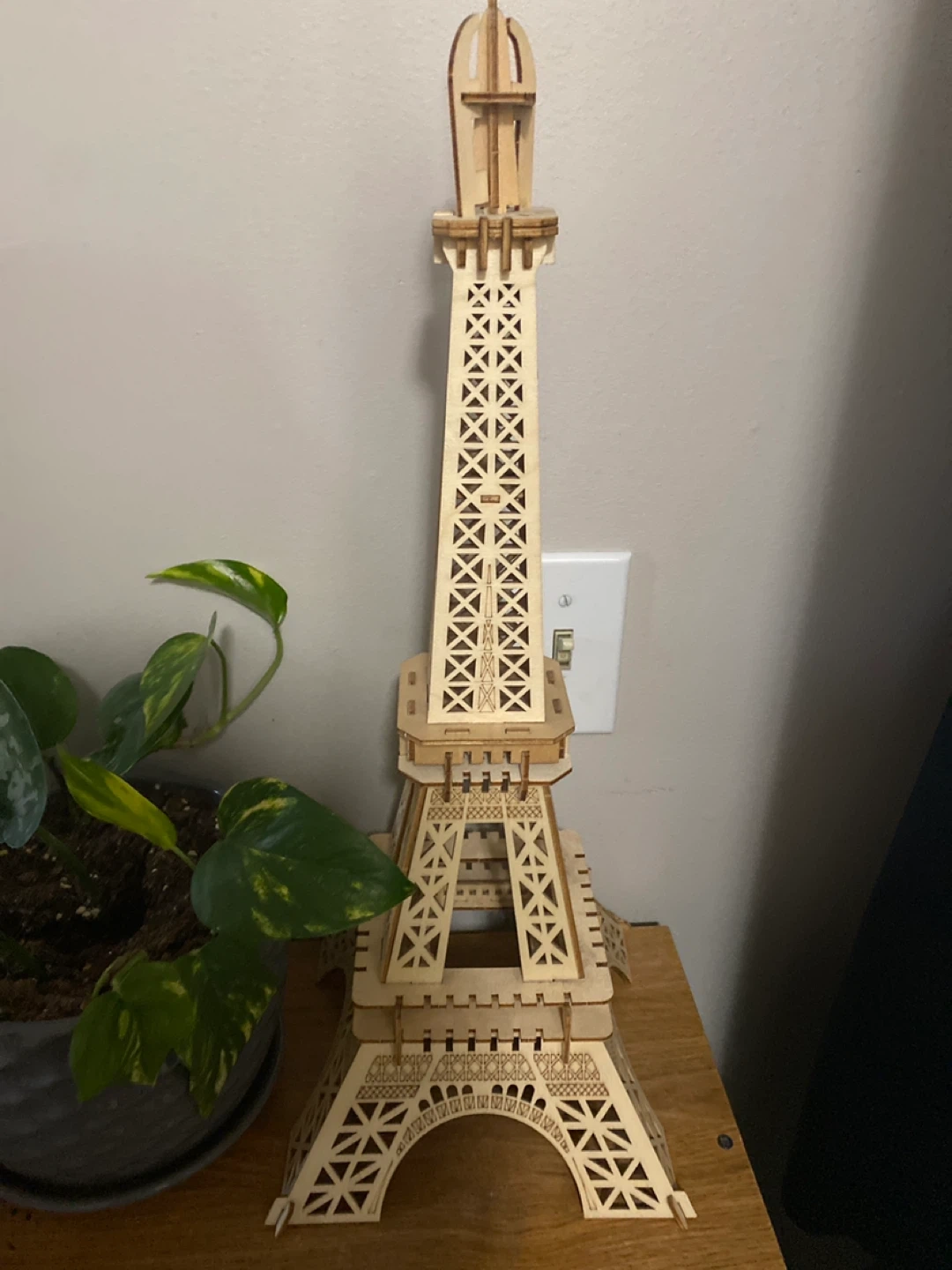 10Selling a wooden Eiffel Tower model, perfect for adding a touch of Parisian charm to your home decor! It's in great condition and ready for a new home 95 percent complete small parts missing