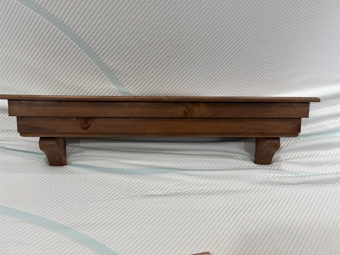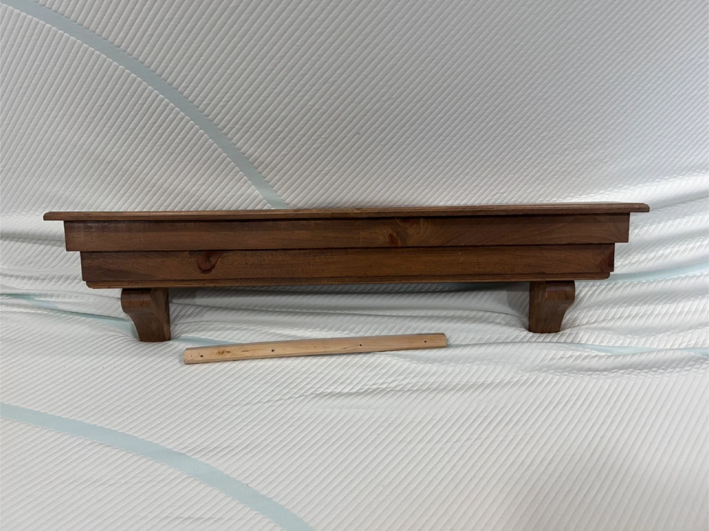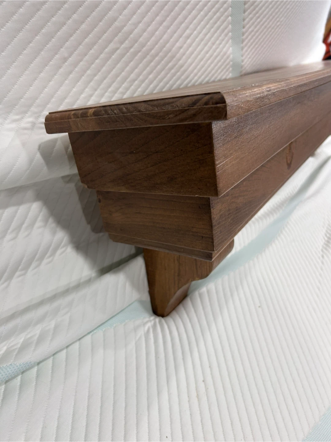 Selling a wooden fireplace mantel, perfect for adding some storage or display space or to hang the stockings over your fireplace. It's in great condition and ready to be mounted. It has a rich, warm tone that would complement many decor styles. Comes with the mounting hardware shown in the pictures