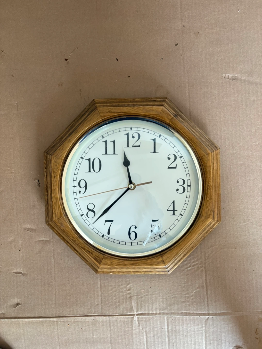 81Selling a wall clock with a wooden frame. It has a classic design with numbers and hands.Pick up at Morley trail NW