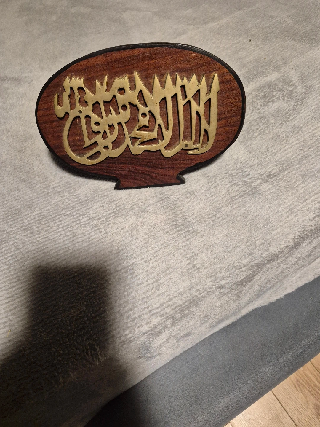 70A beautiful wooden display featuring Islamic calligraphy. It's in great condition and would make a lovely addition to any home