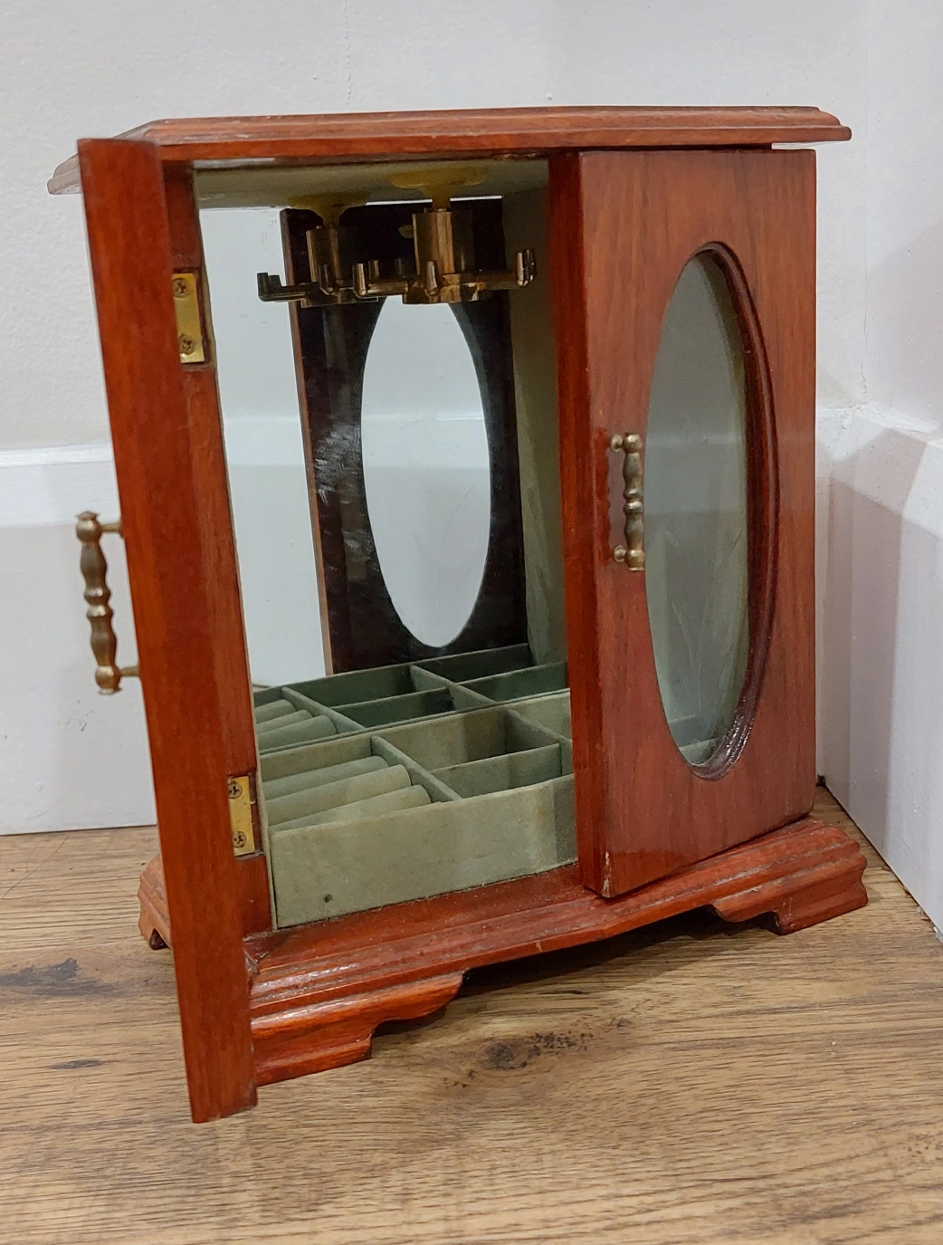 Selling a wooden jewelry box. It has a mirror inside and compartments for organizing your jewelry.