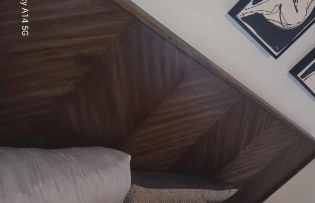 Selling a lovely wooden king size headboard featuring a stylish chevron pattern. It's in great shape and would add a touch of elegance to any bedroom! pickup only 437-870-6281