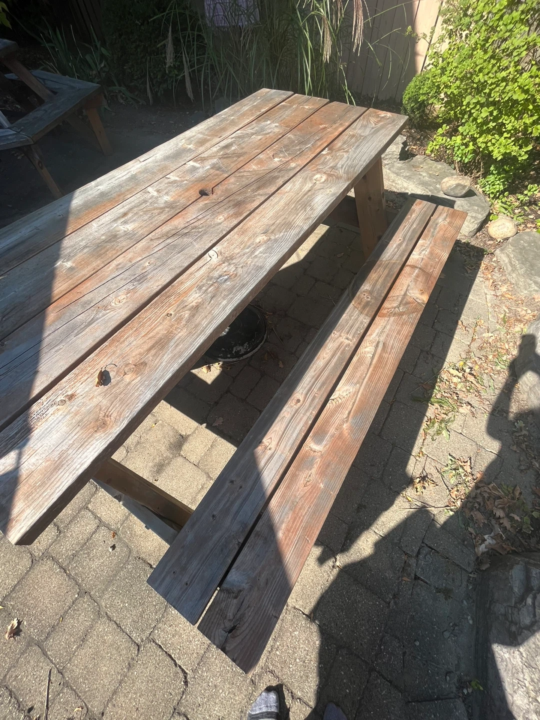 Selling a wooden picnic table, perfect for outdoor gatherings! It's got a classic look and is sturdy. Great for your backyard or patio