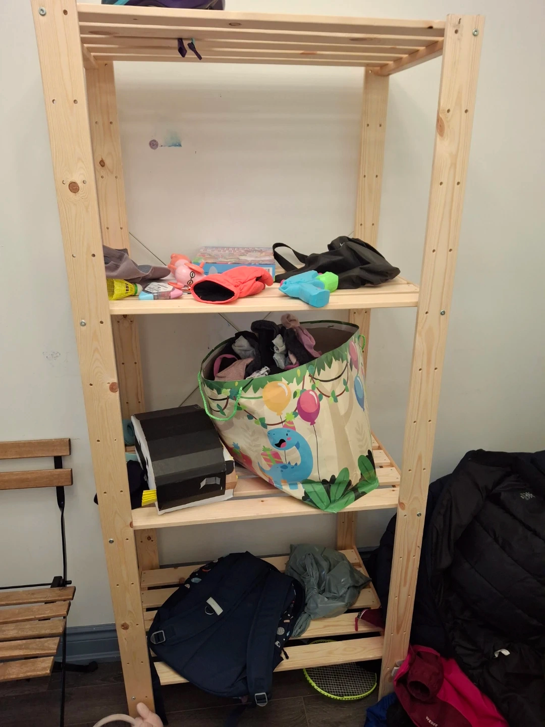 60Wooden shelf unit in good condition. Great for storage! Just 3 months old