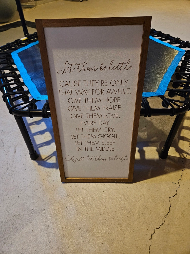 Wooden sign with song lyrics from Billy Dean's "Let Them Be Little" The lettering is laser cut Purchased from Spring Meadow Co on Etsy.