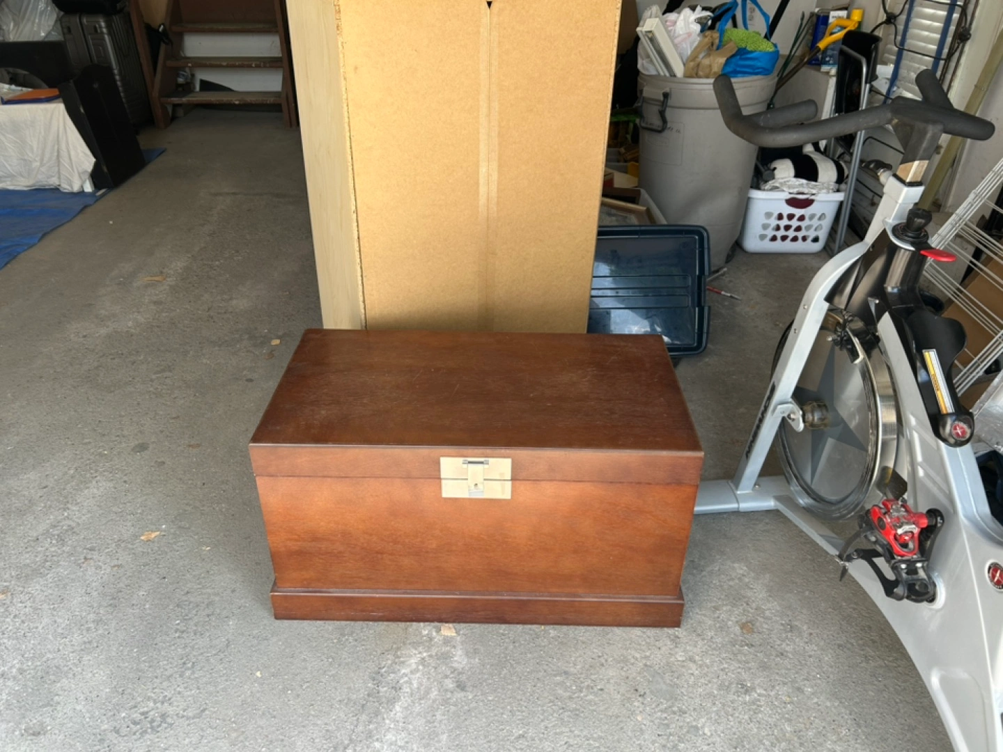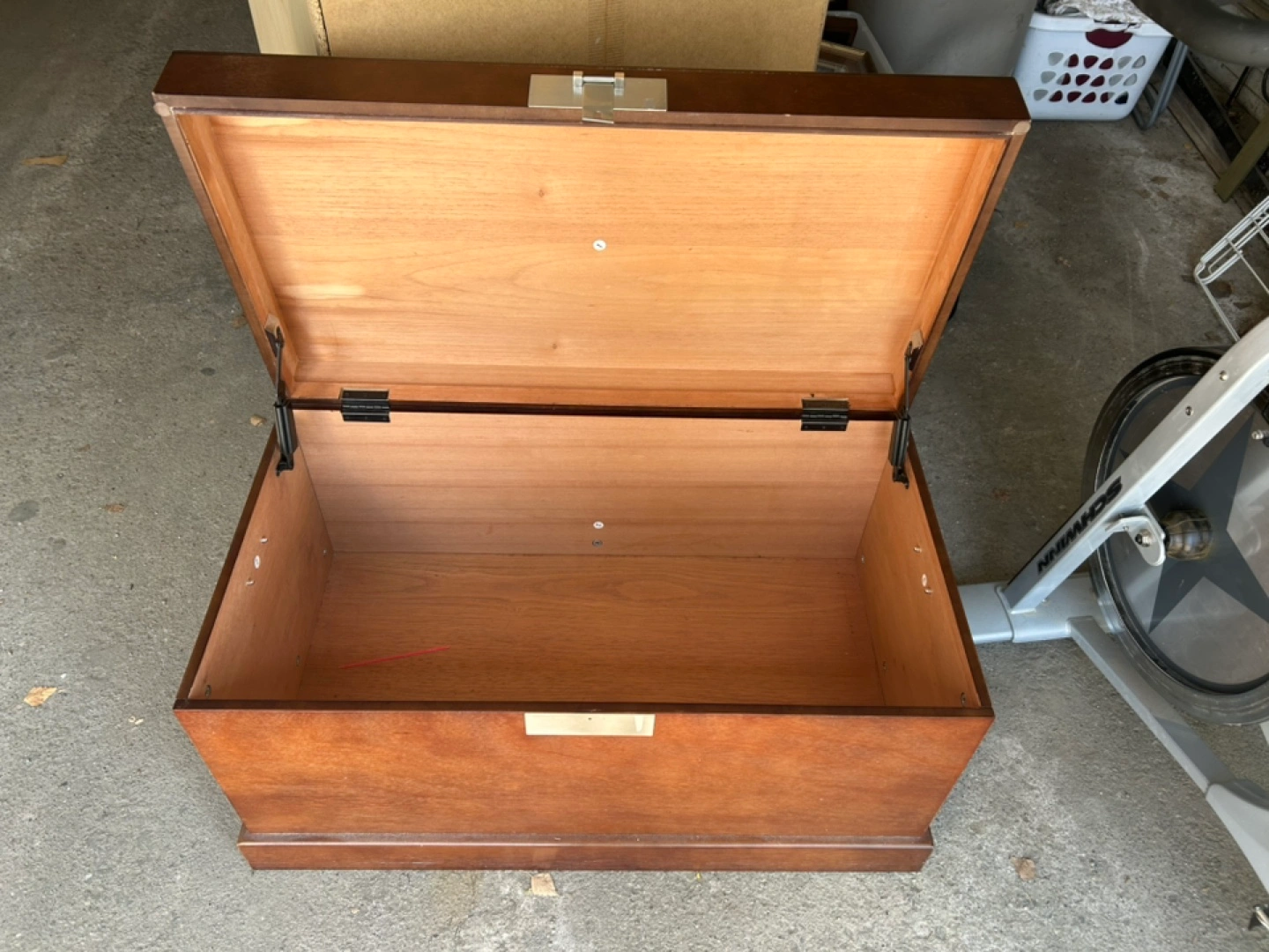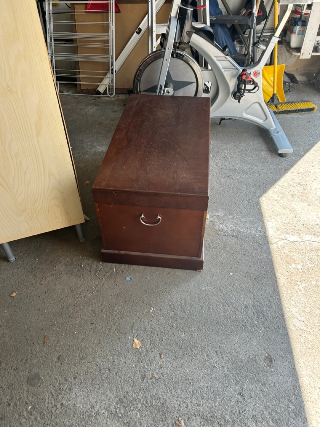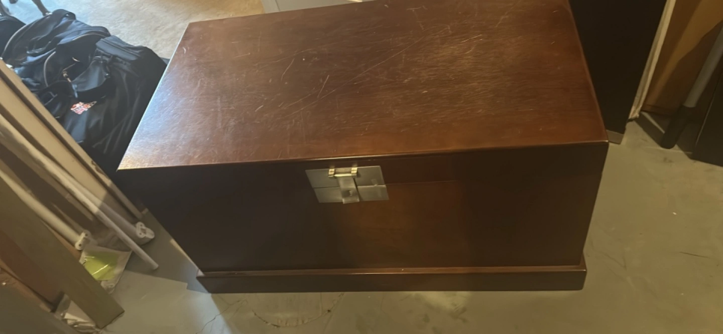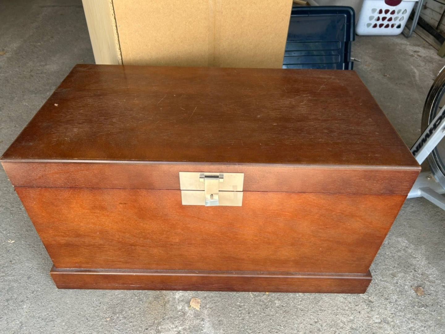13Selling a lovely wooden storage trunk! It's in good condition and perfect for adding some extra storage space to your home. The trunk has a hinged lid and a metal clasp. It would work great for storing blankets, toys, or other household items Dimensions: - height 18 inches - long 33 inches - deep 18 inches