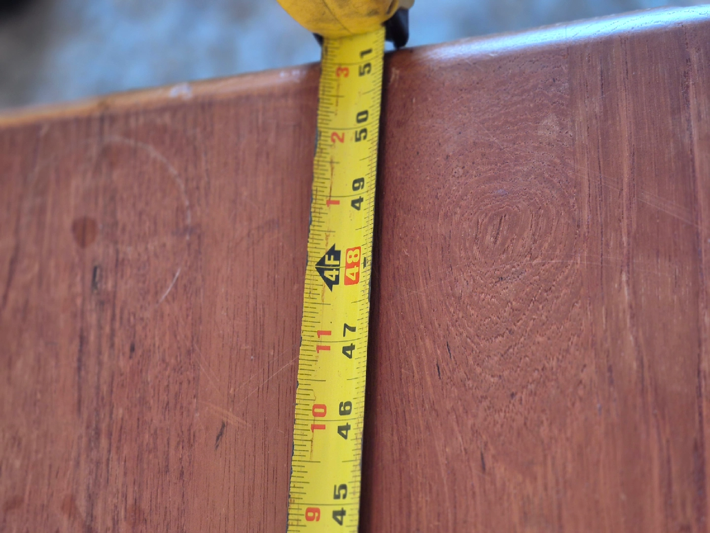 Selling a wooden table in good condition. It measures approximately 52 inches in length and 29 inches in width. Perfect for a dining room or living room space!